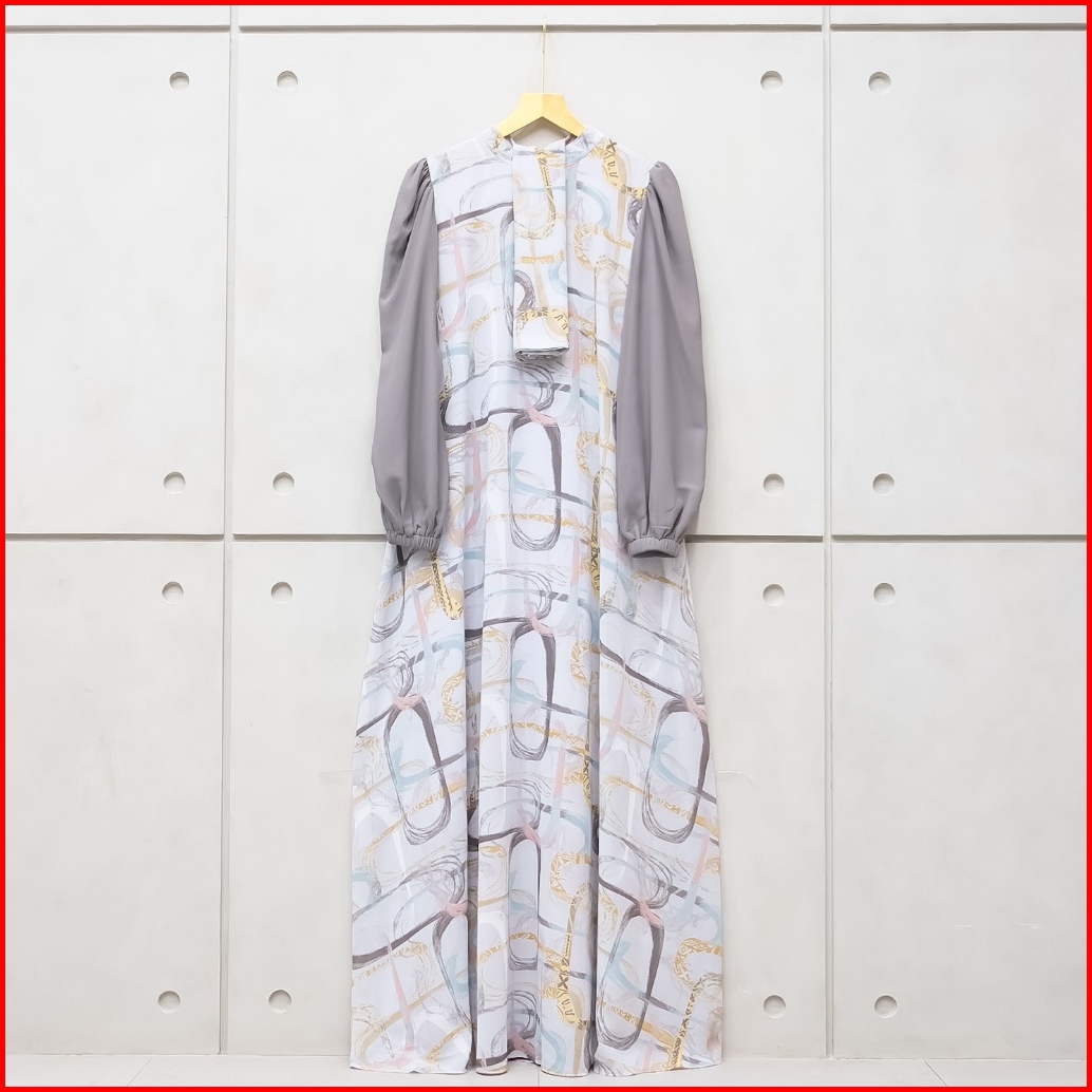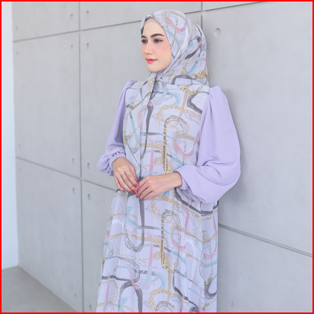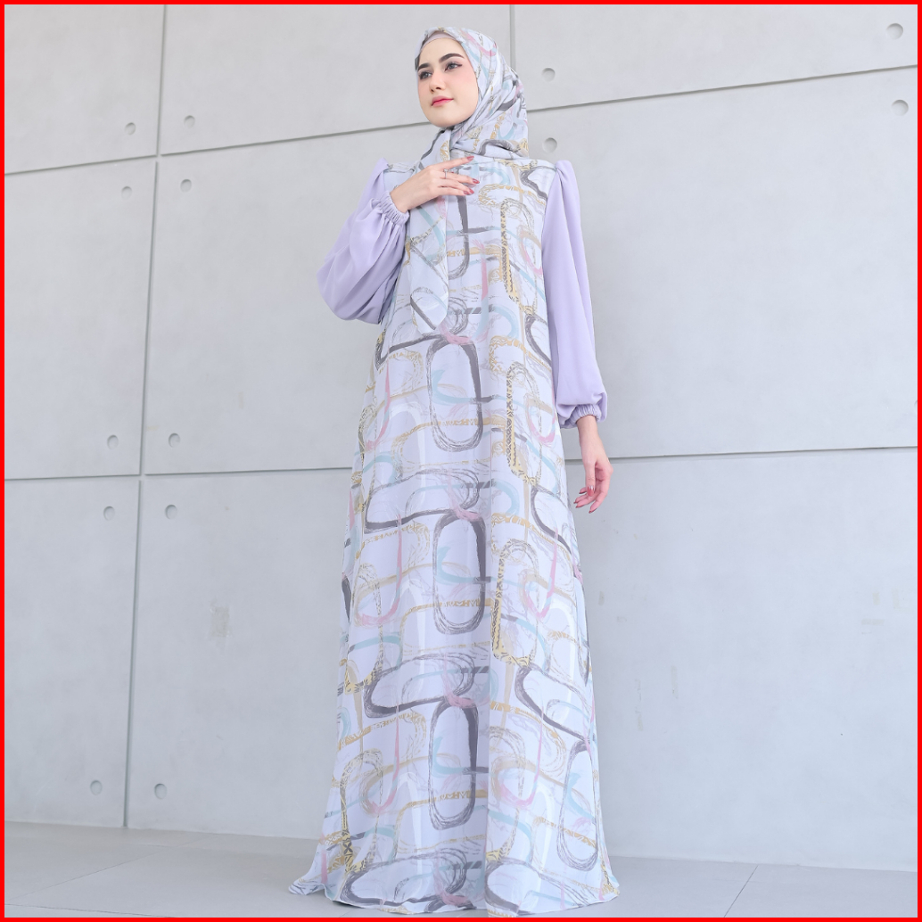 Aisyalina Id Naisha Set Series 29 Pashmina Segiempat Bahan Ceruti Motif Printing Full Furing Gamis Wanita Elegan Tangan