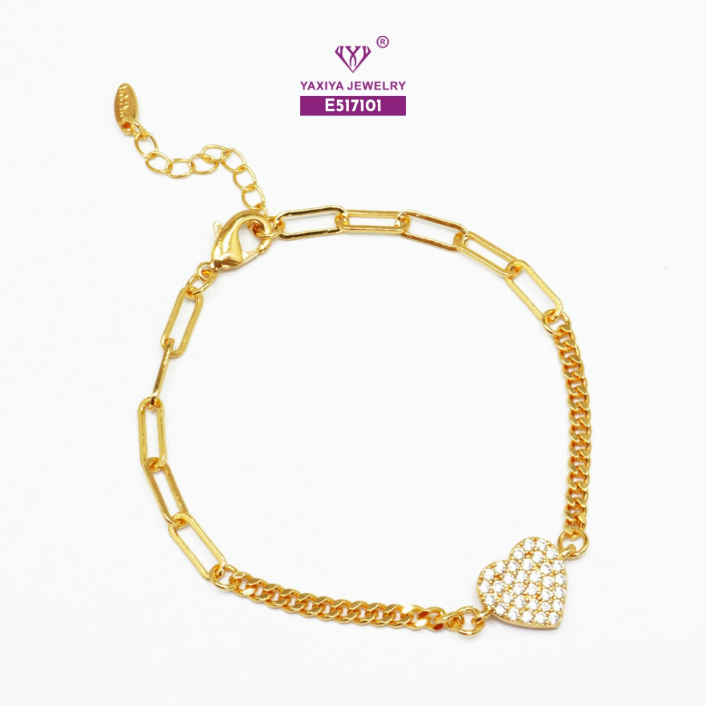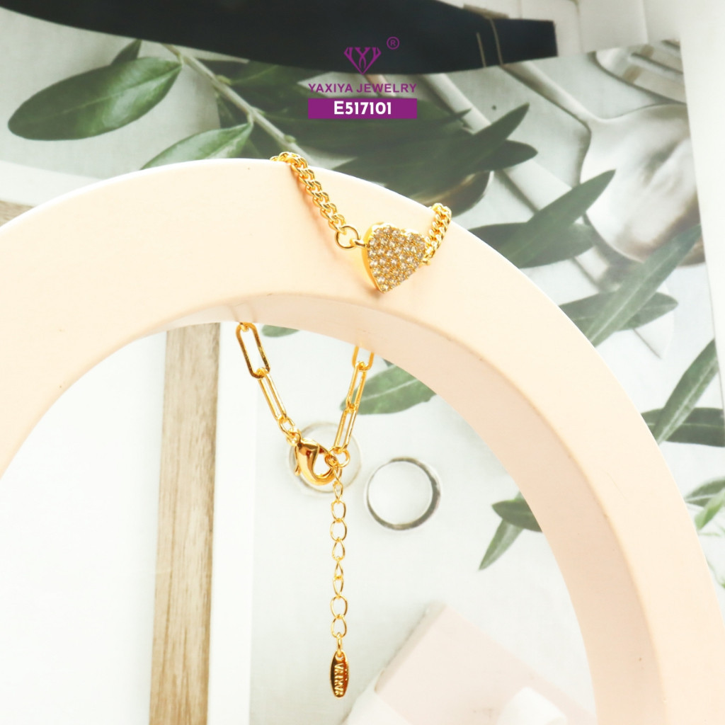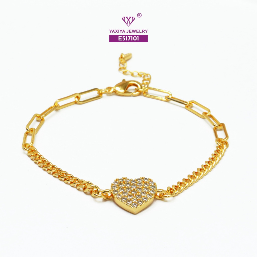 Yaxiya Gelang Rantai Love / Hati / Heart Perhiasan Imitasi Warna Go ld 18 K 069