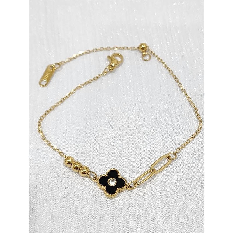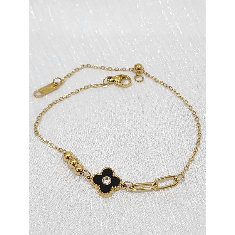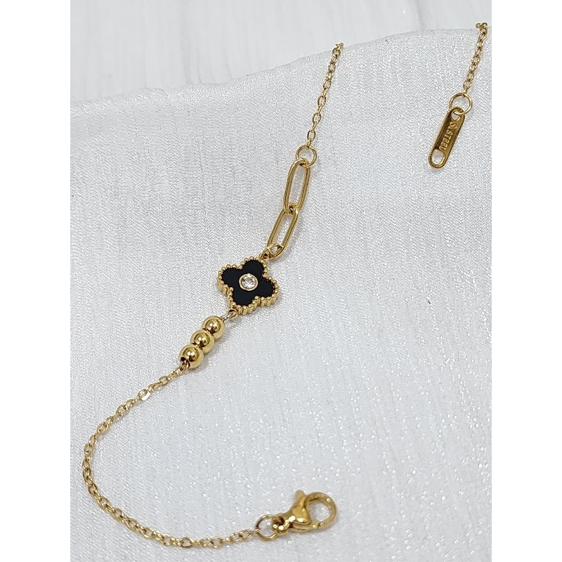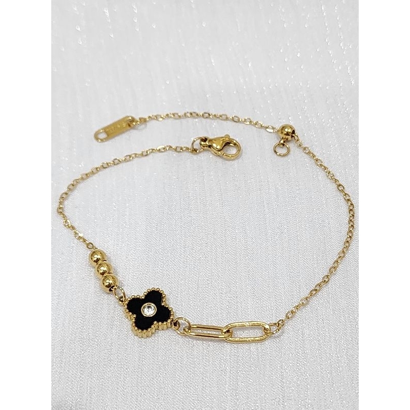 Gelang Tangan Wanita Titanium Bunga Mata Dia mond Model Kombinasi Em as Anti Karat Terbaru