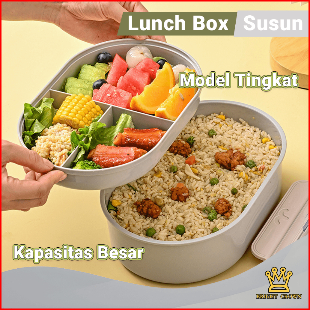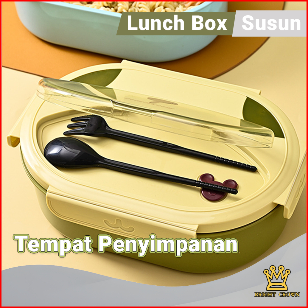 Bright Crown Tempat Makan Set 2 Tingkat 3 Sekat Free Alat Makan High Quality Bekal Sekolah Anak Lunch Box