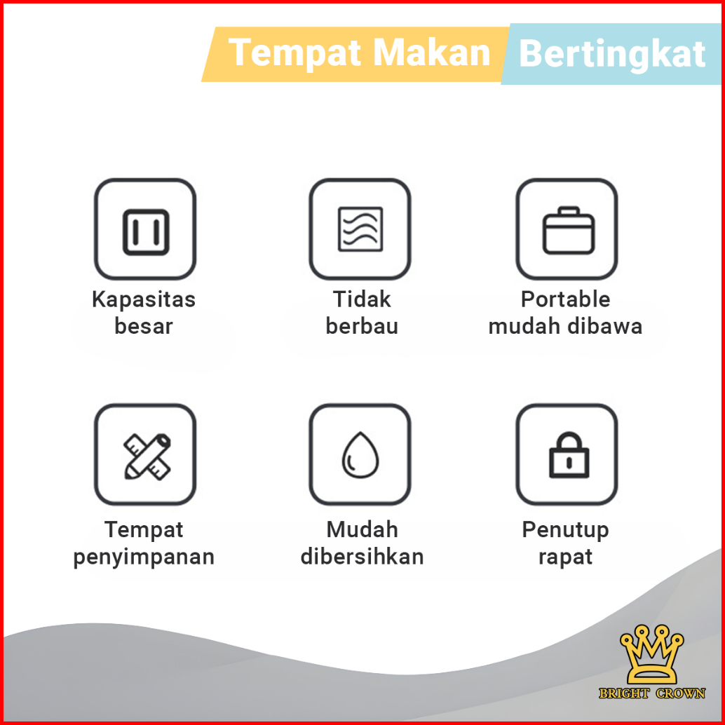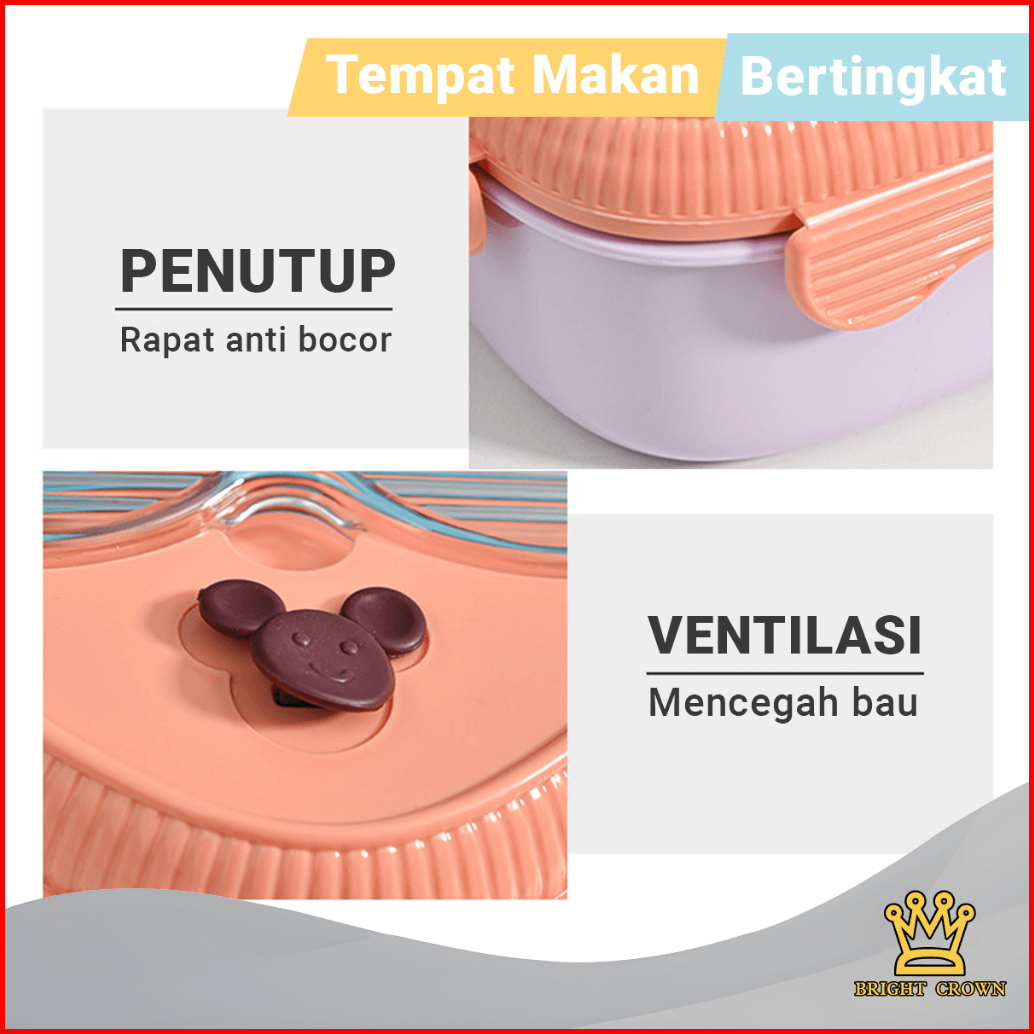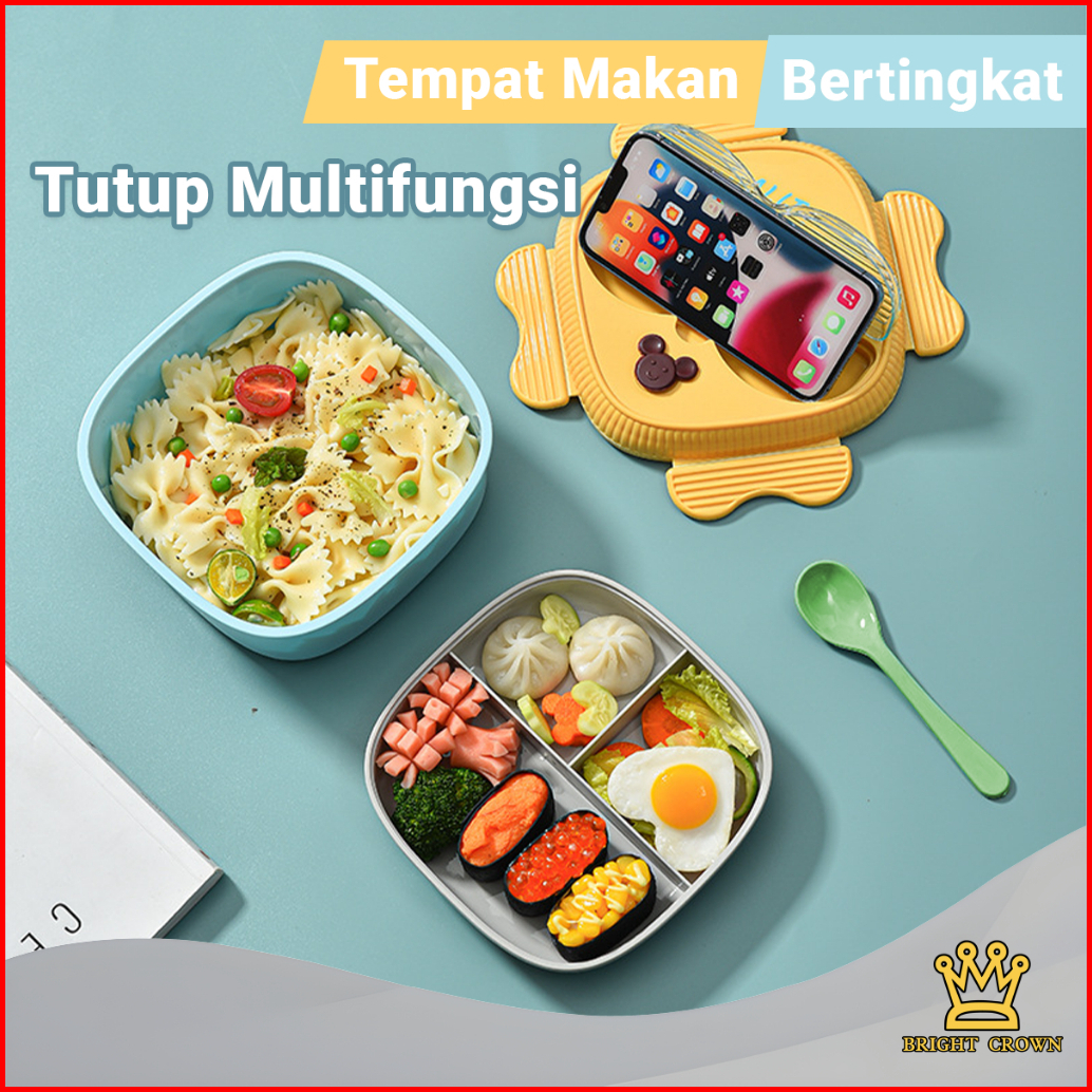 Bright Crown Lunch Box Kotak Makan 2 Tingkat 3 Sekat Holder Hp Bpa Free Anti Tumpah Free Sendok