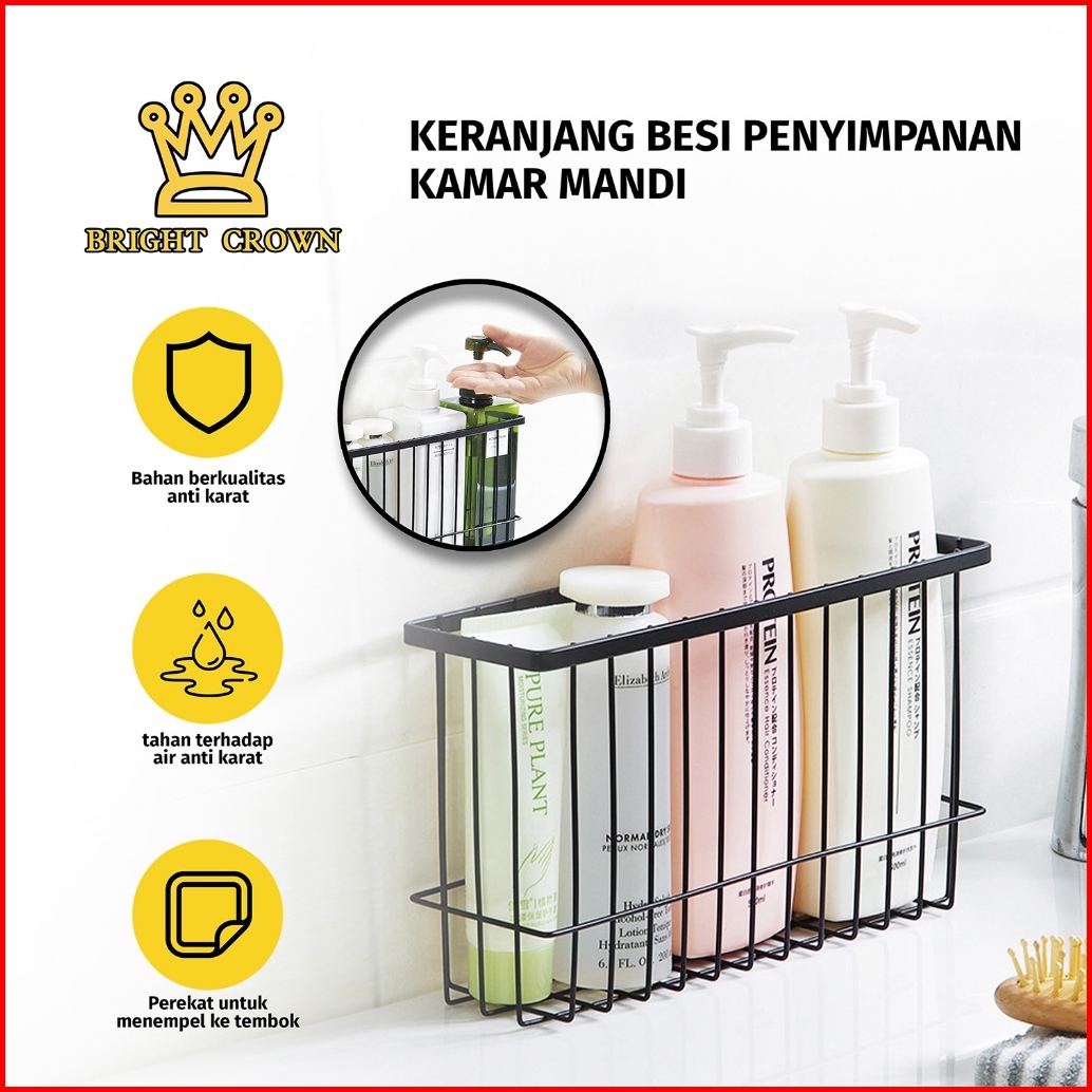 Bright Crown Rak Besi Dinding Kamar Mandi Tempel Minimalis Rak Sabun Rak Dapur Serbaguna Tanpa Bor