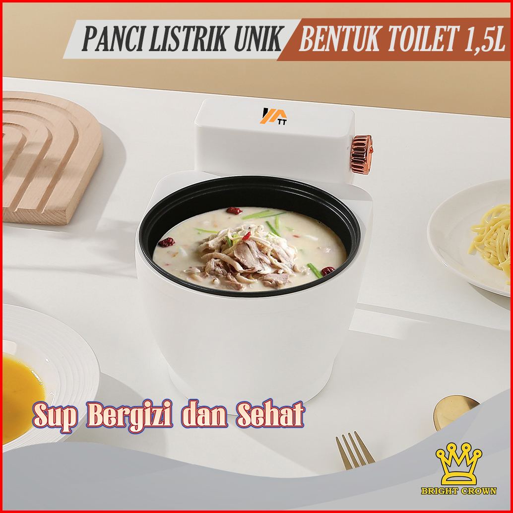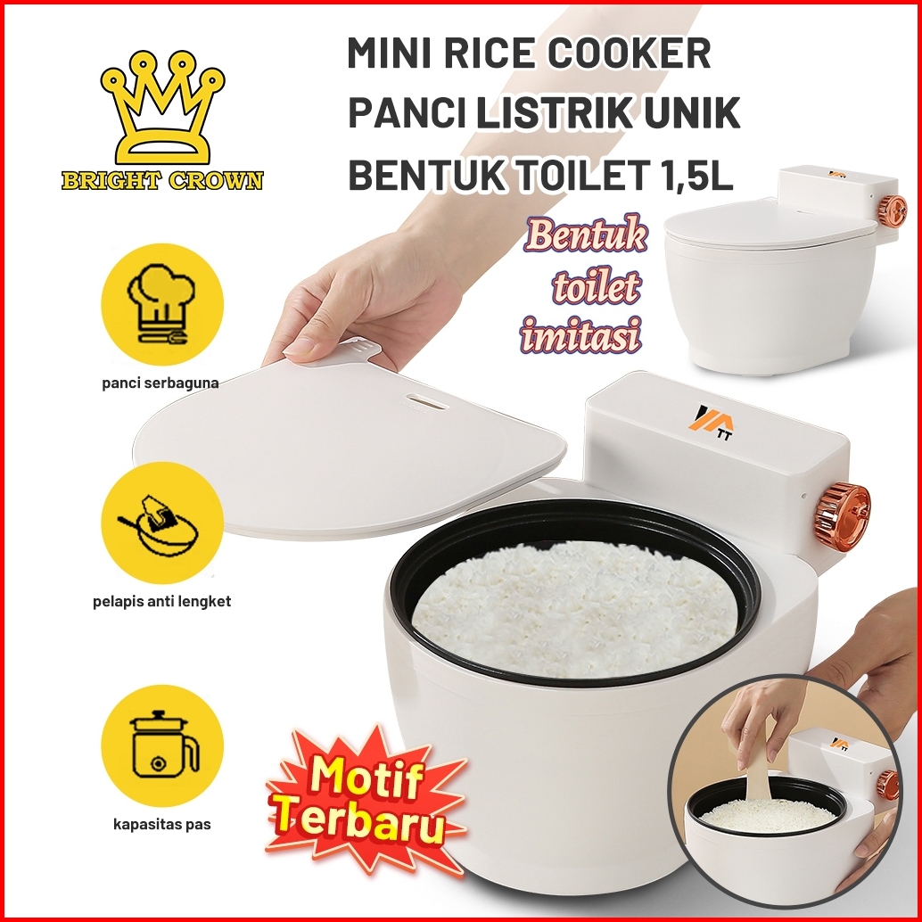 Bright Crown 1.5l Panci Listrik Rice Cooker Mini Unik Bentuk Toilet Lapisan Keramik Panci Elektrik Multifungsi 1.5liter