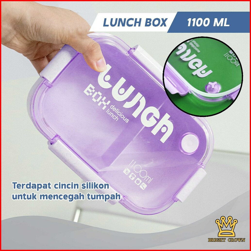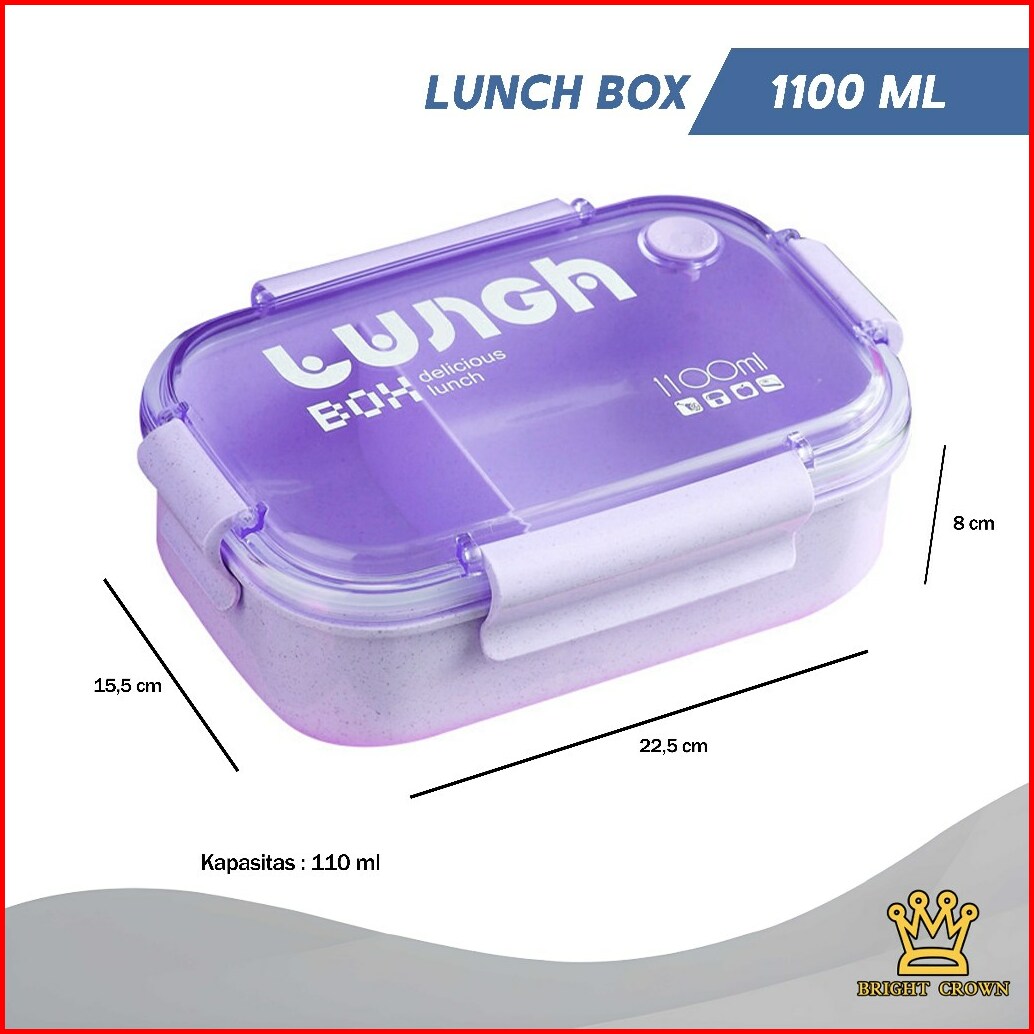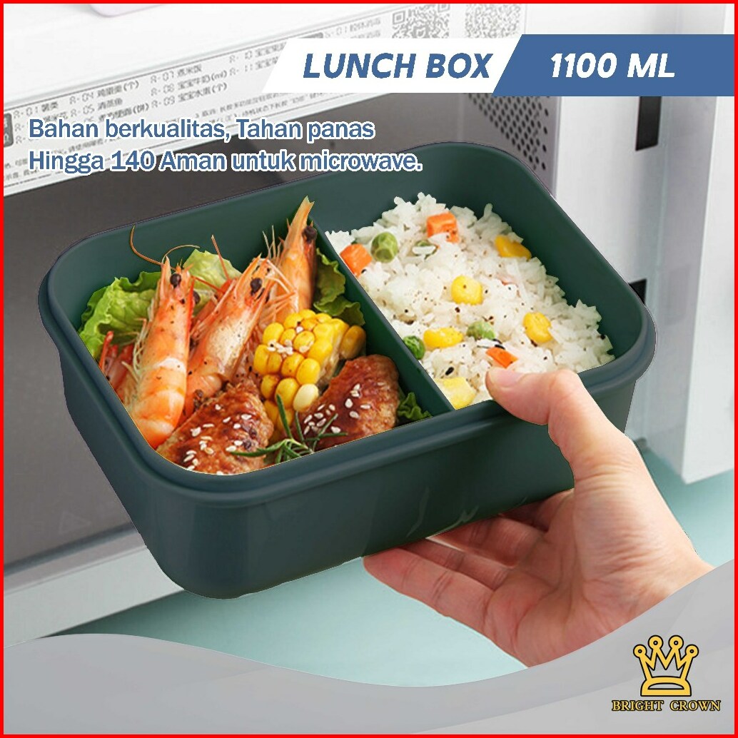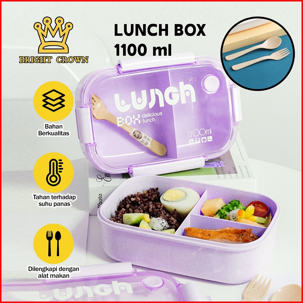 Bright Crown Lunch Box Set 1100ml Kotak Bekal Makan 2 Sekat Free Sendok Garpu Jerami Gandum Tempat Bekal Makan Anti Tump