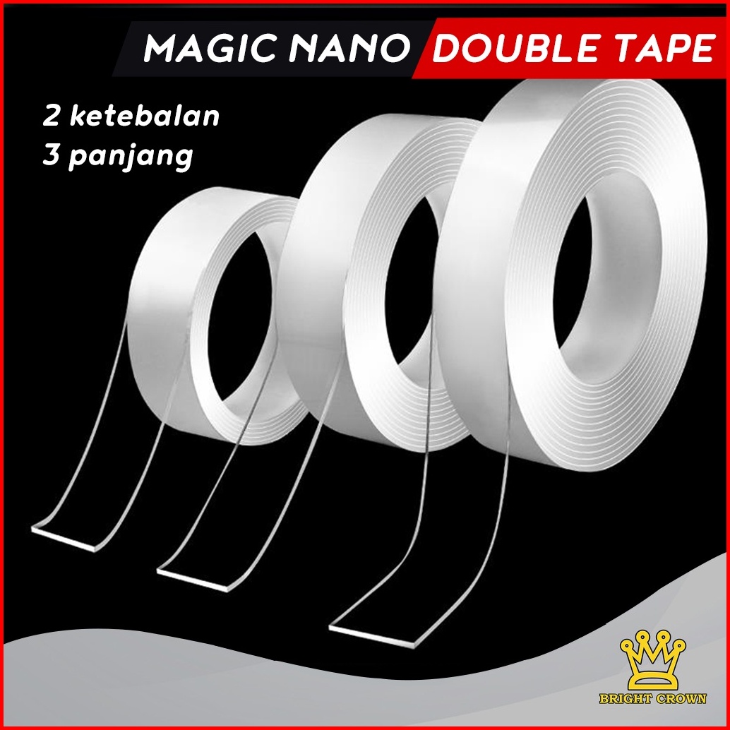 Bright Crown Nano Double Tape Double Tape Selotip Isolasi Bening Multifungsi 3 Ukuran