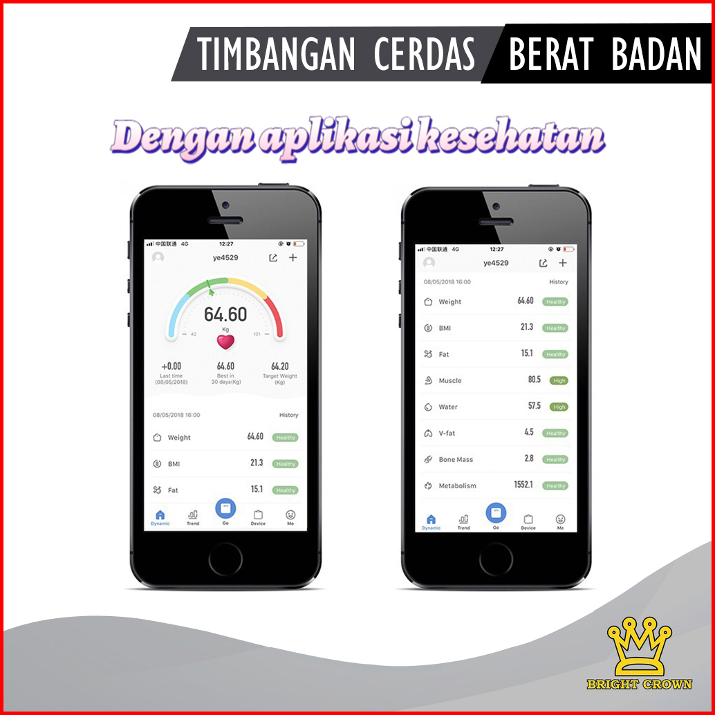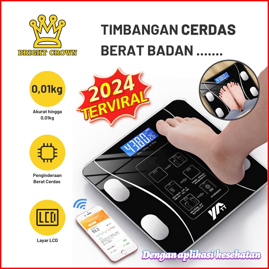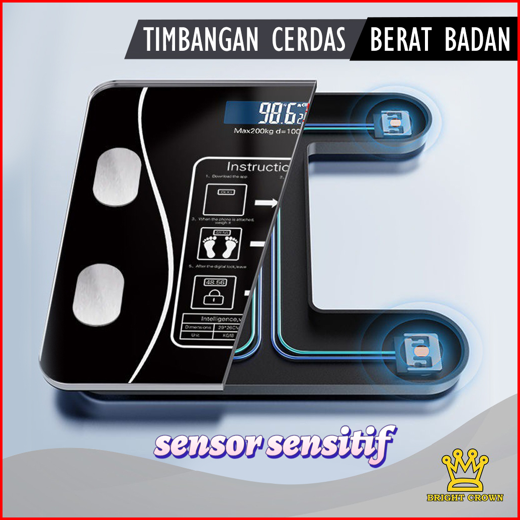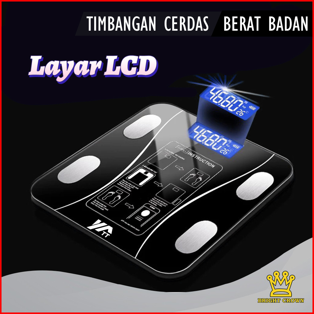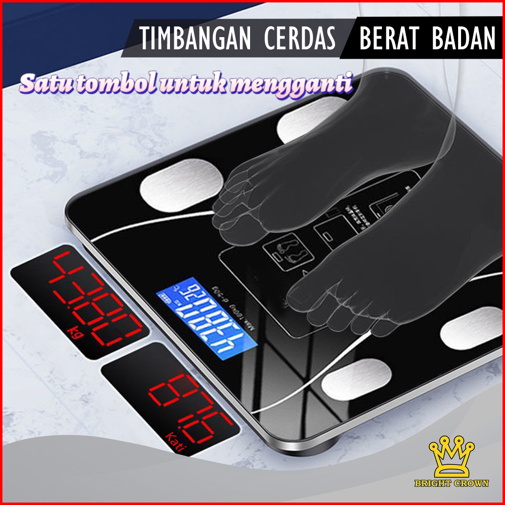 Bright Crown Timbangan Badan Digital Bluetooth 180kg Layar Lcd Smart Body Fat Scale Tempered Glass