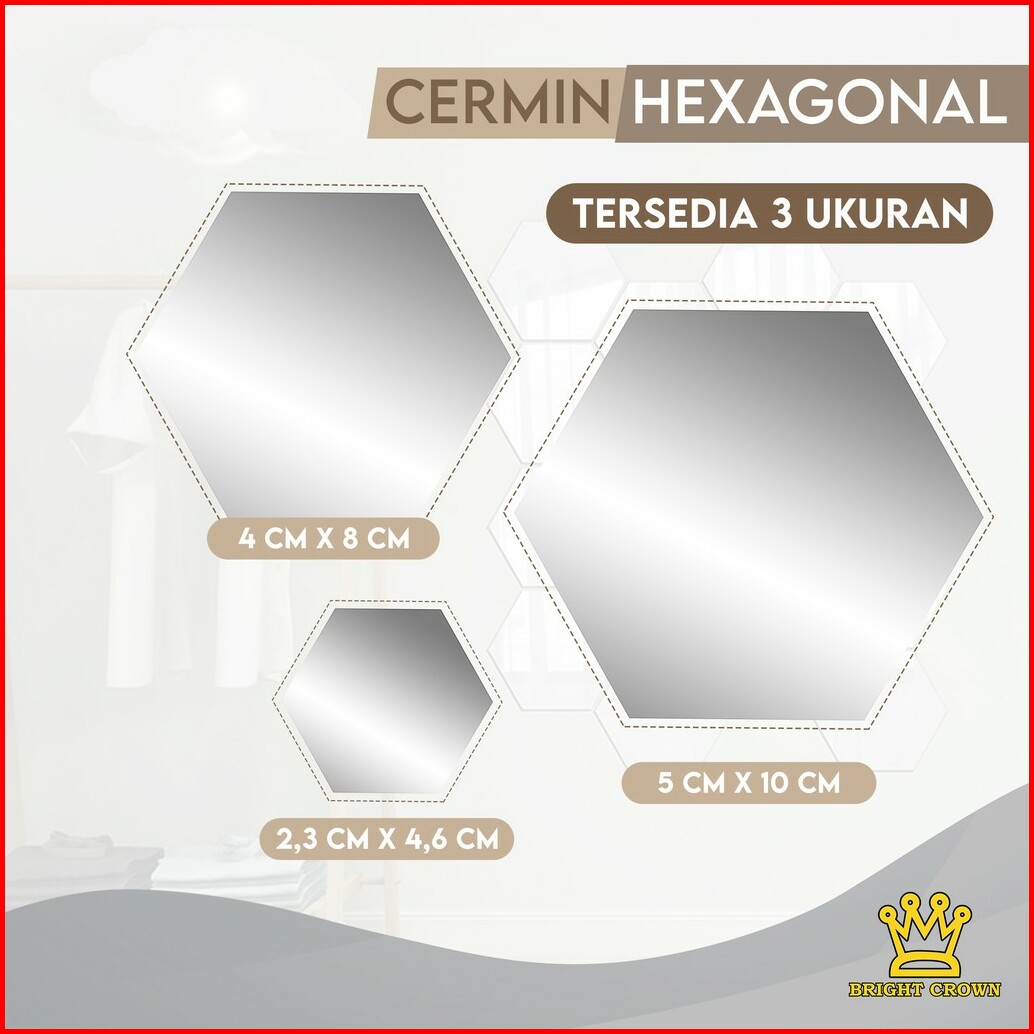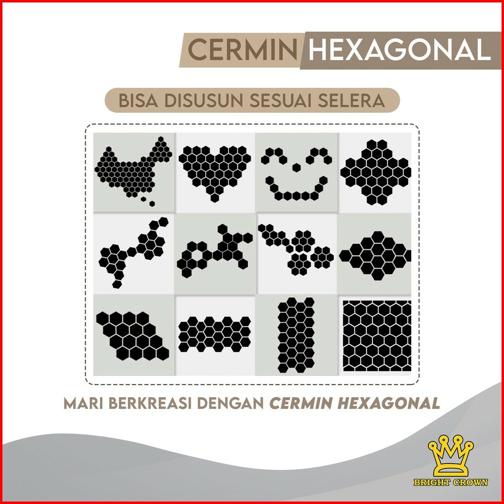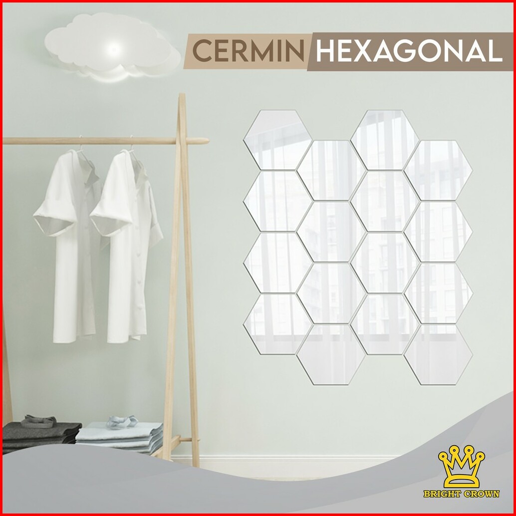 Bright Crown 12pcs Stiker Cermin Kaca Hiasan Dinding Hexagonal Hexagonal Mirror 3 Ukuran