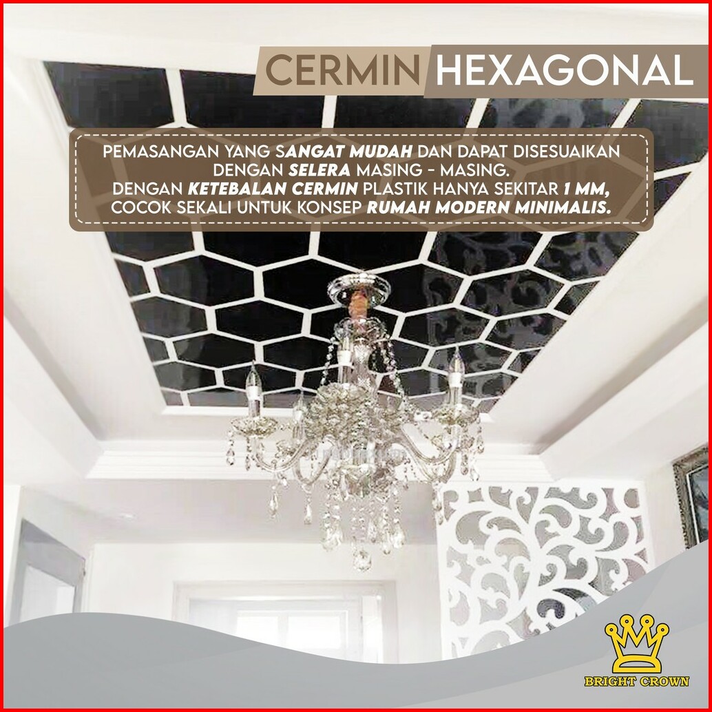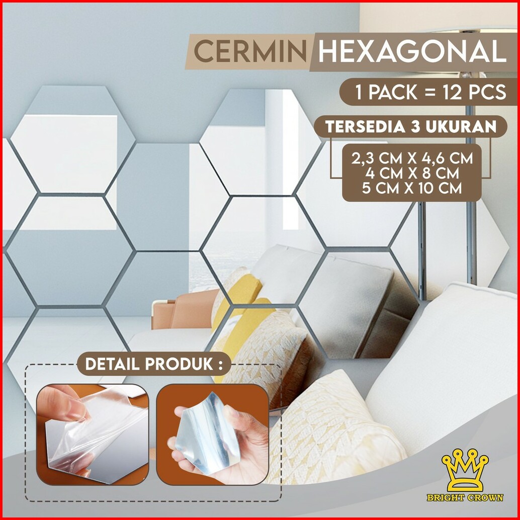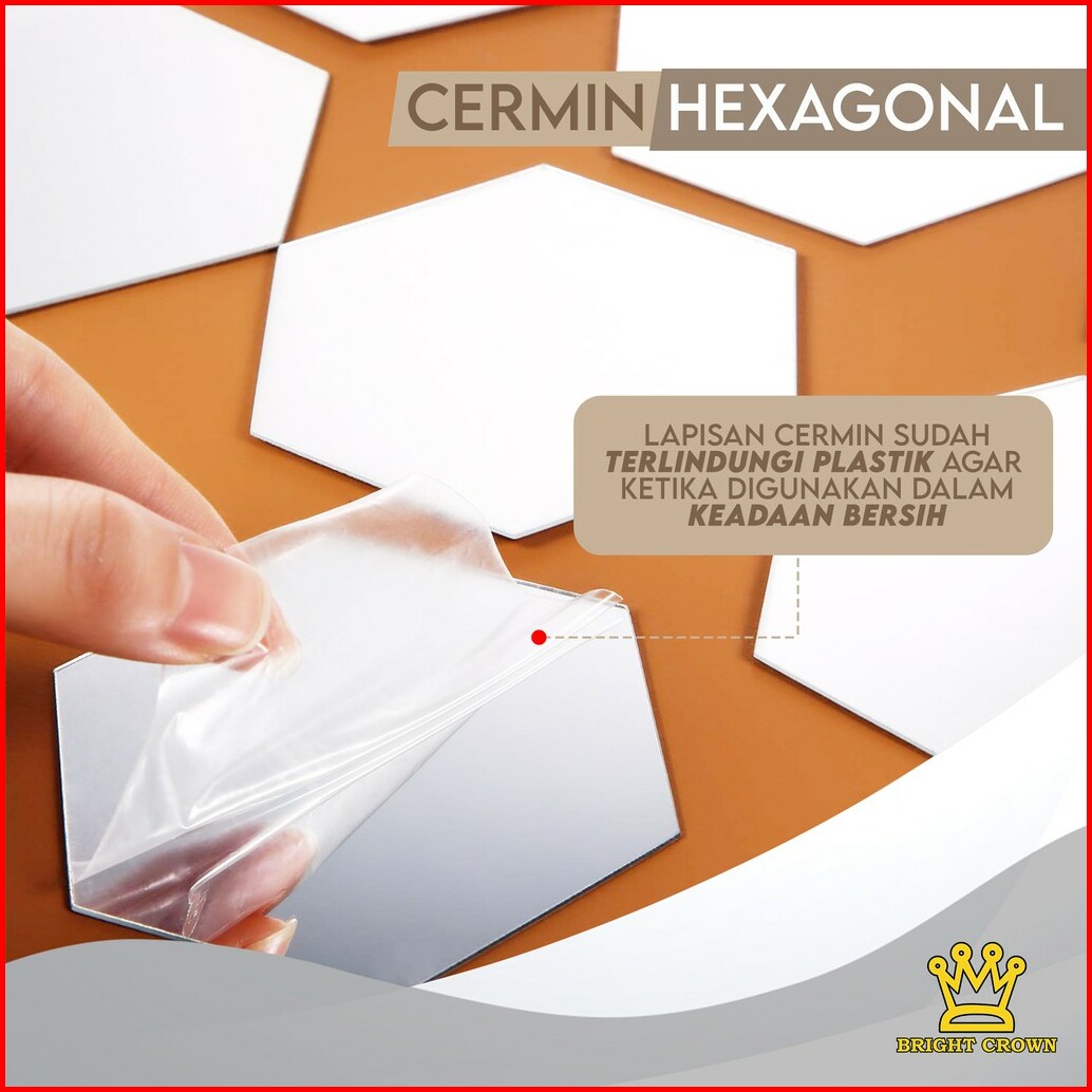 Bright Crown 12pcs Stiker Cermin Kaca Hiasan Dinding Hexagonal Hexagonal Mirror 3 Ukuran