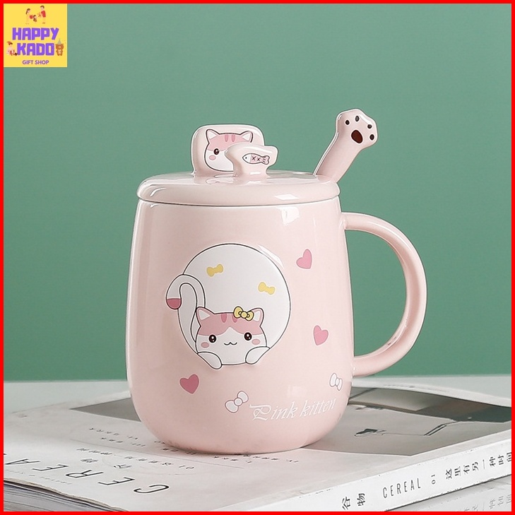 Gelas Mug Kucing Aesthetic Lucu Mungil Keramik Kado Ulang Tahun Hadiah Natal Valentine