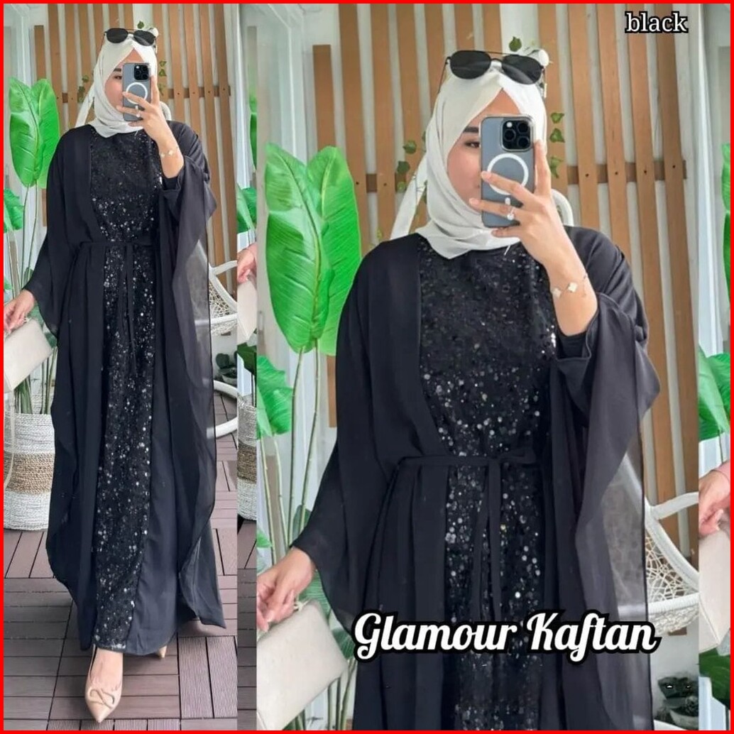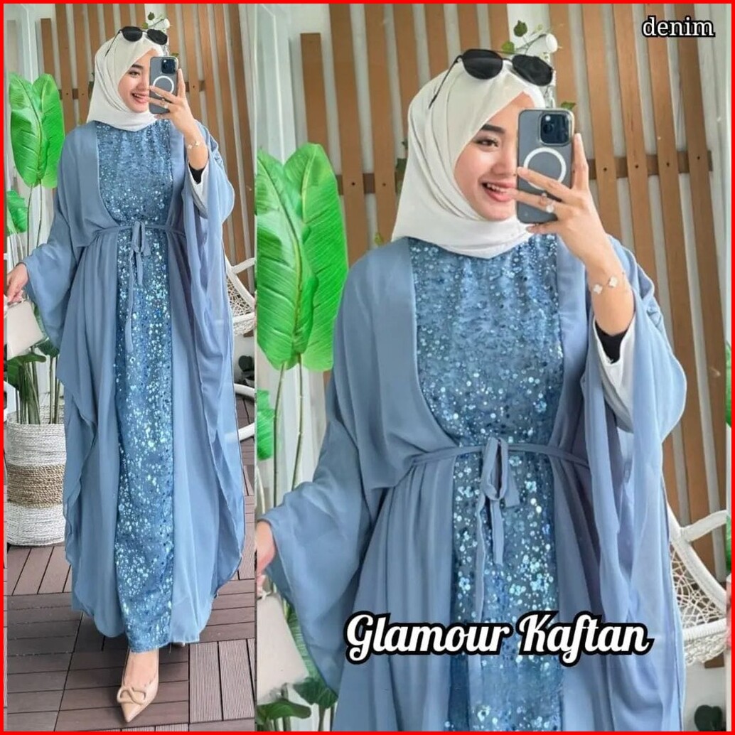 R.a - Glamour Kaftan Wanita Muslim Matt Ceruty Babydoll Mix Squin All Size Fit To Xl Besar Ootd Gaun Pesta Kondangan Fas