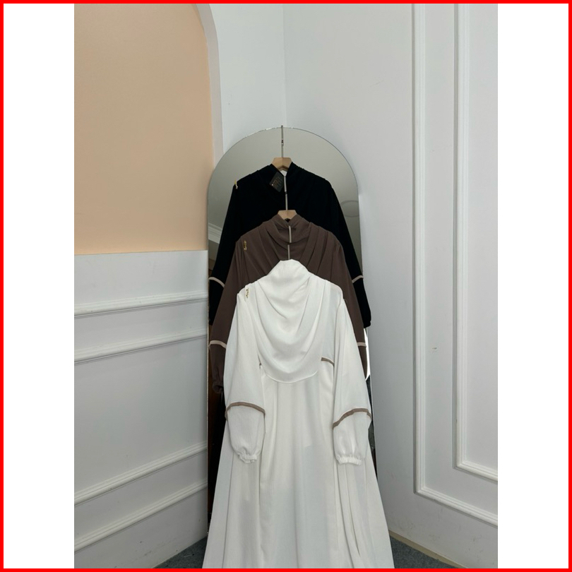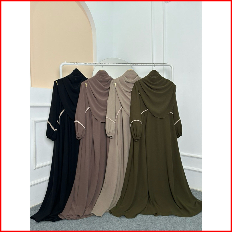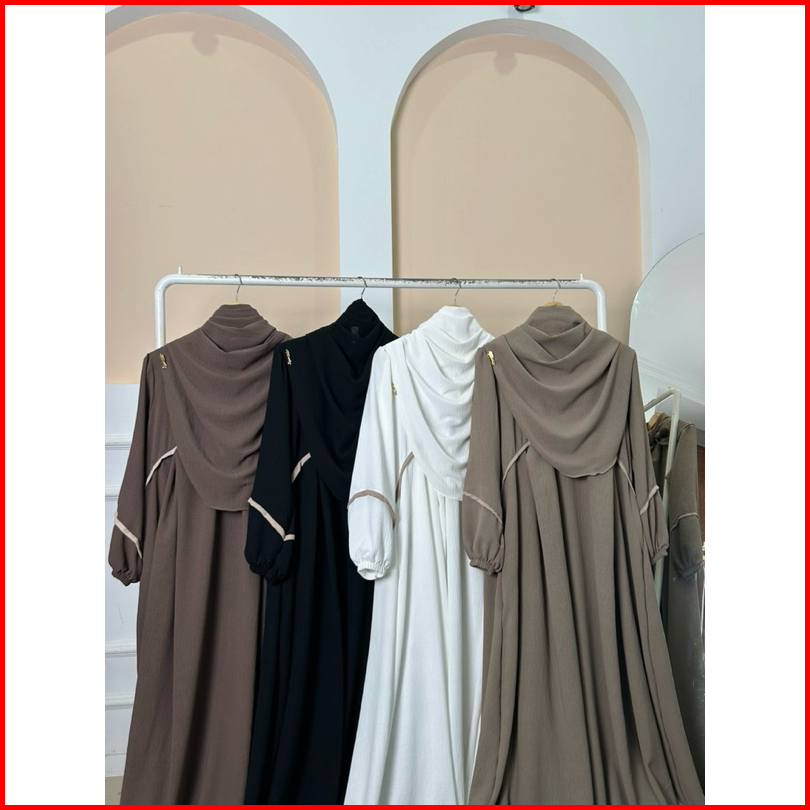 Dfm - Mecca Abaya Set Syari Pasmina Oval Gamis Wanita Bahan Crinkle Airflow