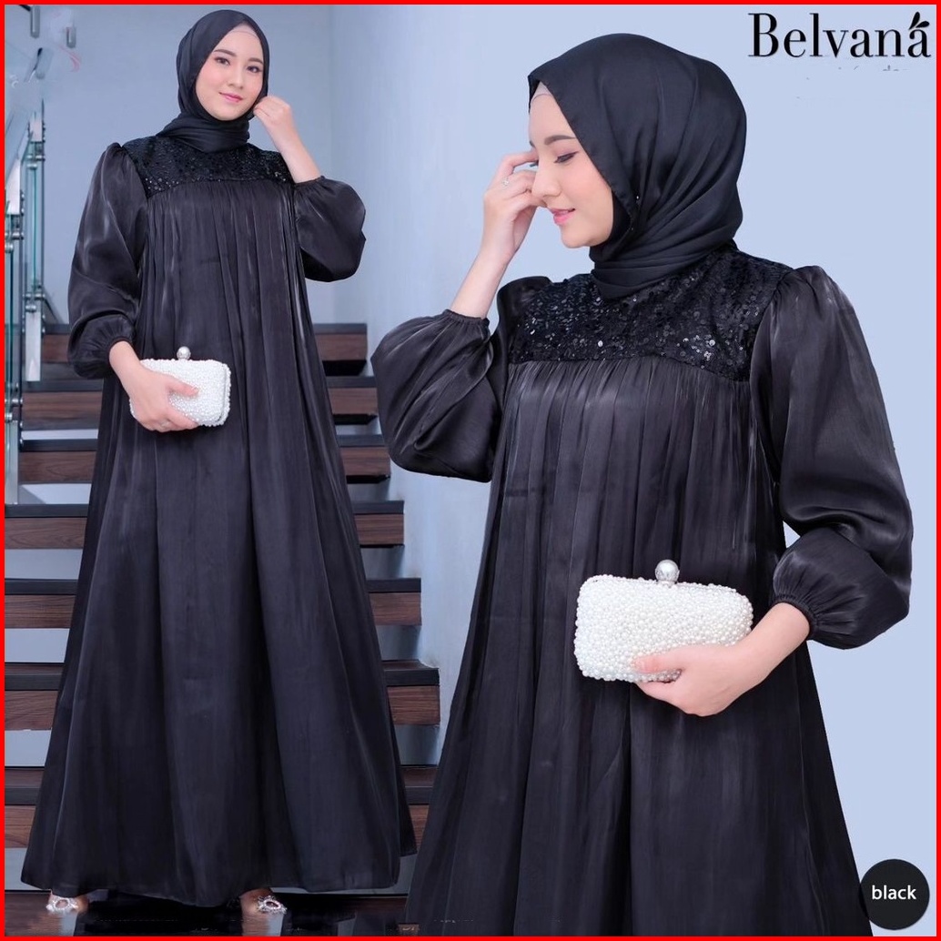 R.a - Belvana Dress Maxy Wanita Muslim Modern Kekinian Matt Shimer Polos Basic Ootd Gaun Pesta Kondangan Fashion Terlari