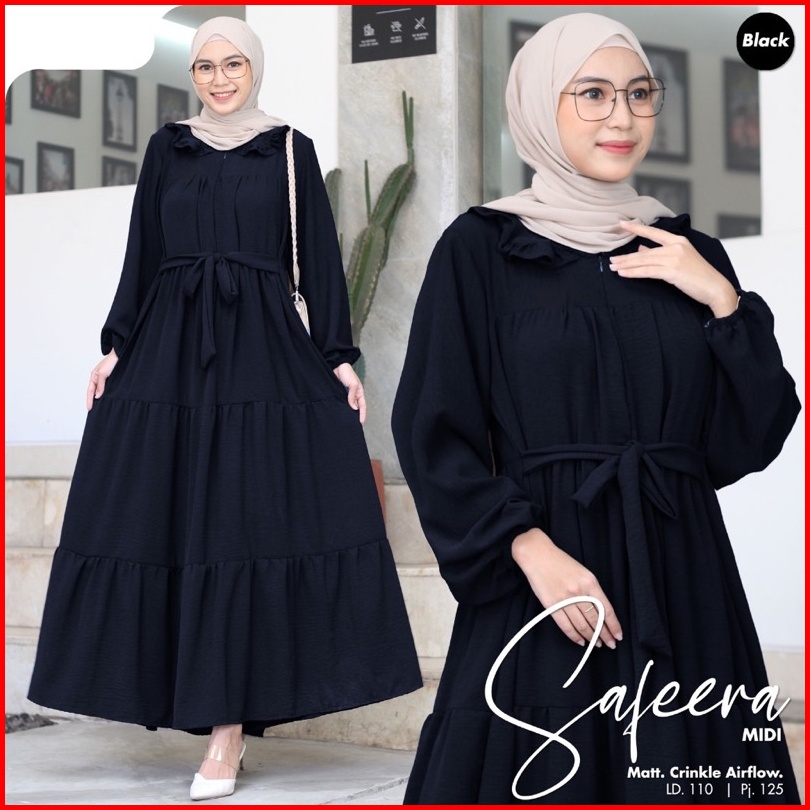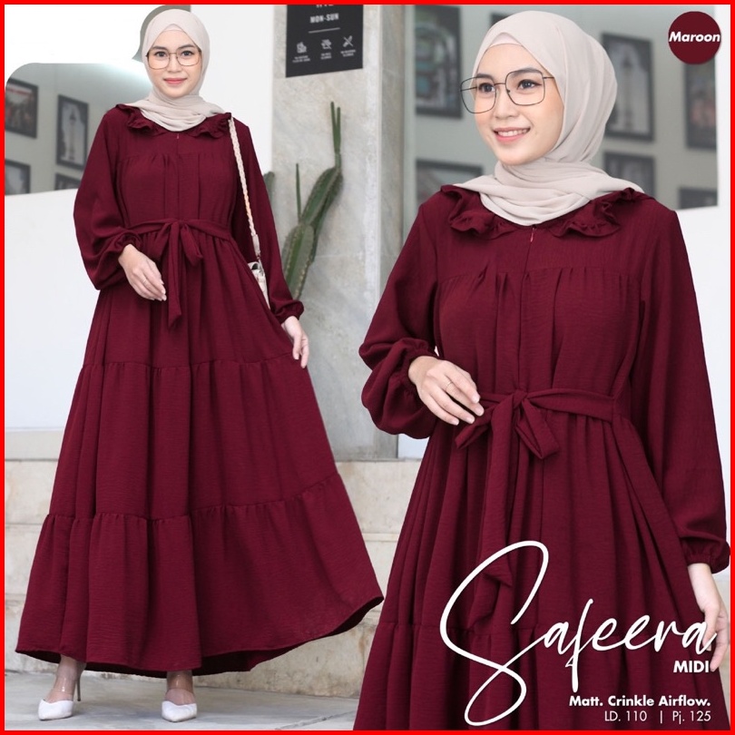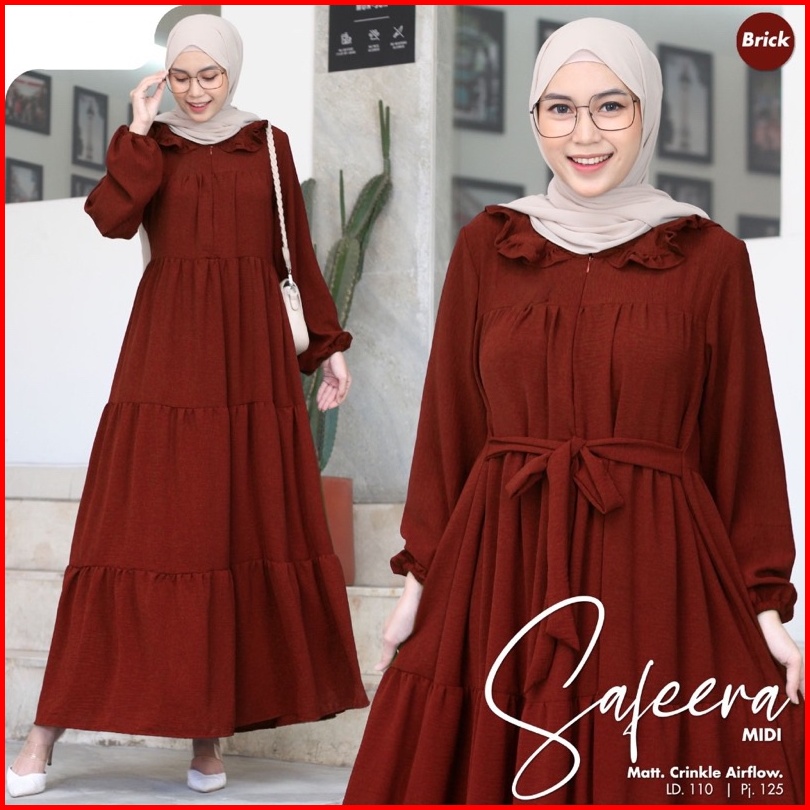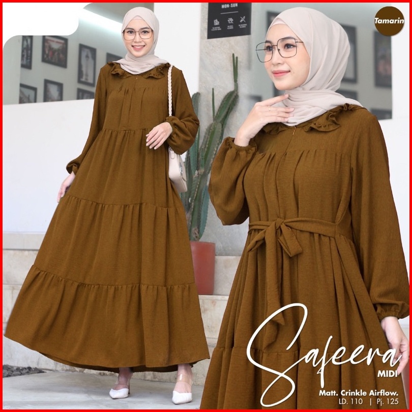 Safeera Midi Dress Bahan Crinkle Airflow Premium