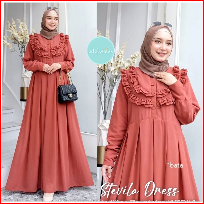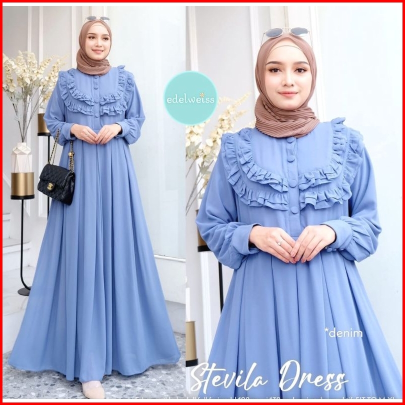 Stevila Dress Maxy Gamis Crinkle Airflow Kondangan Lebaran Muslimah