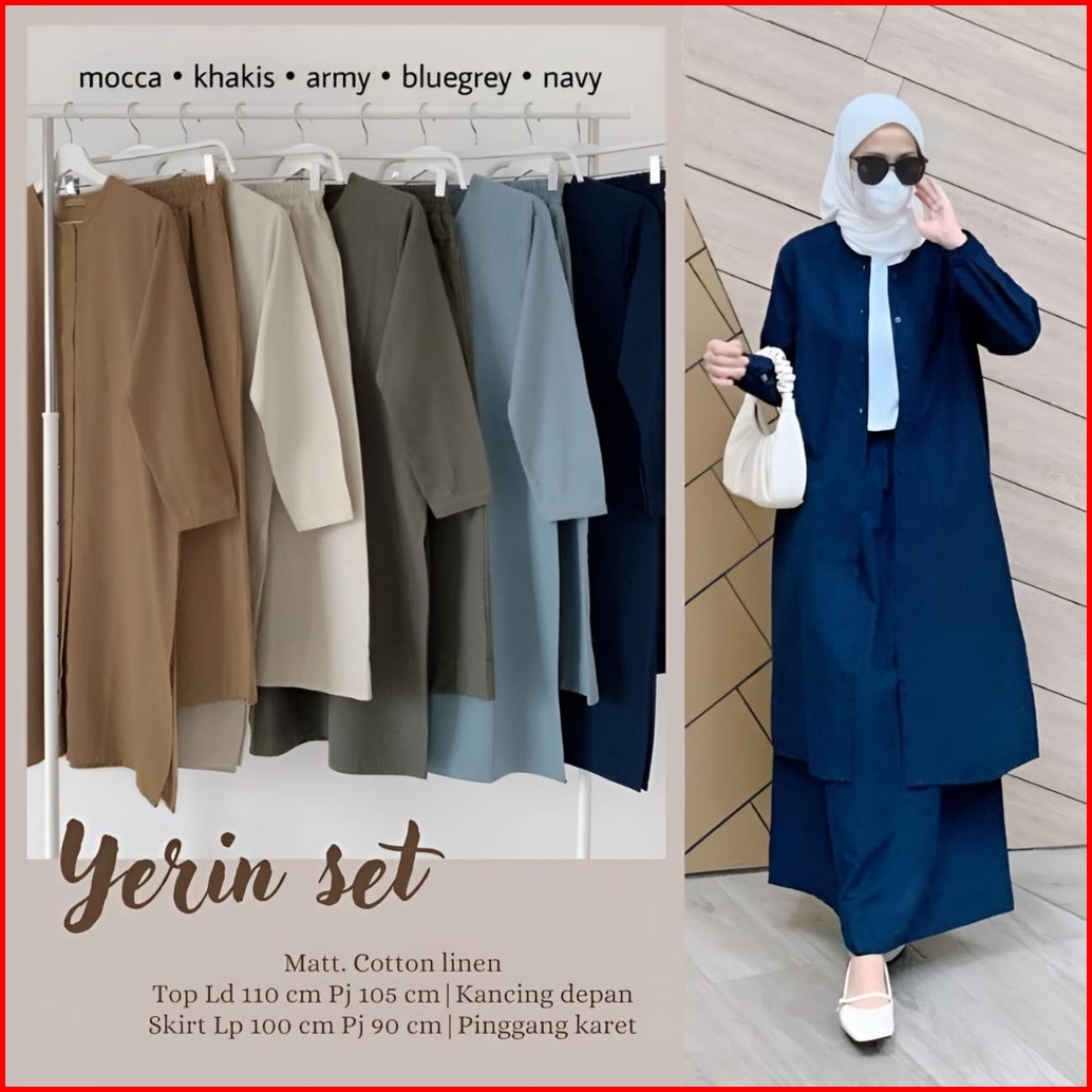 Vallina Outfit - Yerin One Set Linen Rami Setelan Wanita Remaja Muslim Ootd Kondangan Premium