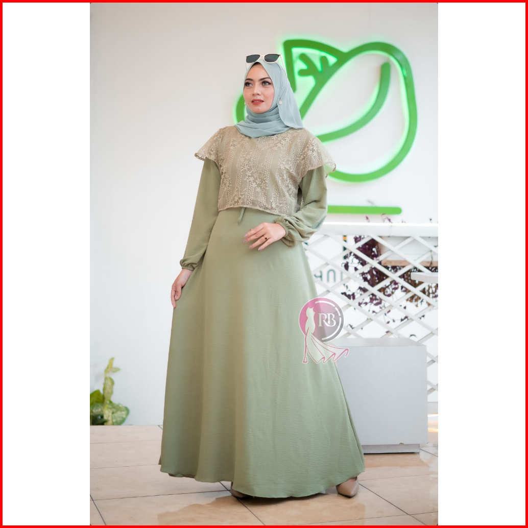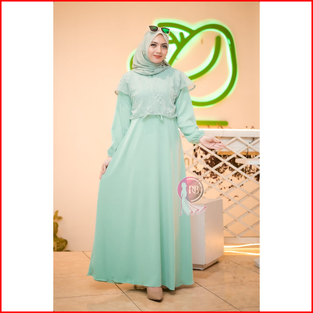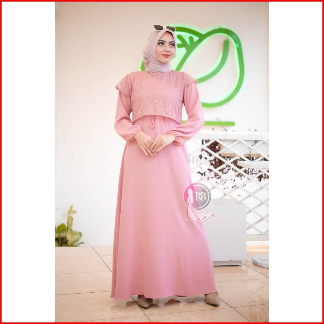 Shanas Maxi Dress Remajs Polos Viral Terbaru Mix Brukat Malika Karet Muslim Gamis Wanita Lebaran Mewah