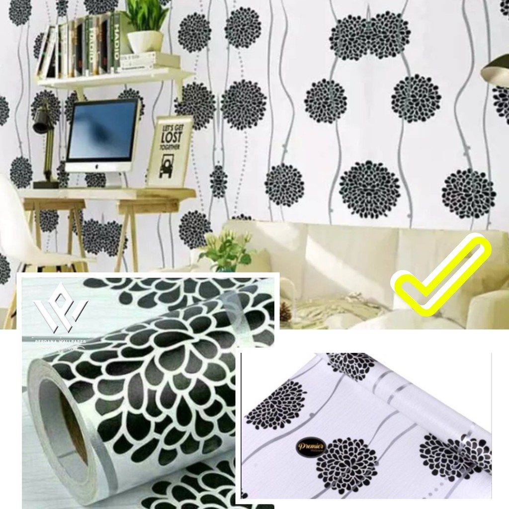 Promo Wallpaper Anti Air - Dendolion Hitam | 45cm x 10 meter | Awet & Tahan Lama | PERDANA WALLPAPER