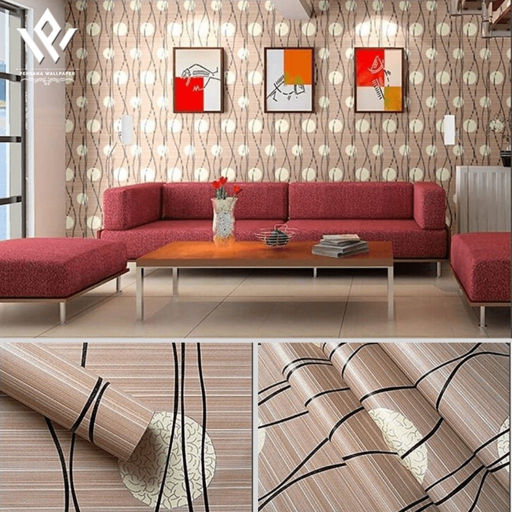 PROMO WALLPAPER ANTI AIR / ANTI KOTOR - MOTIF POLKADOT COKELAT UKURAN 45CM X 10M | PERDANA WALLPAPER