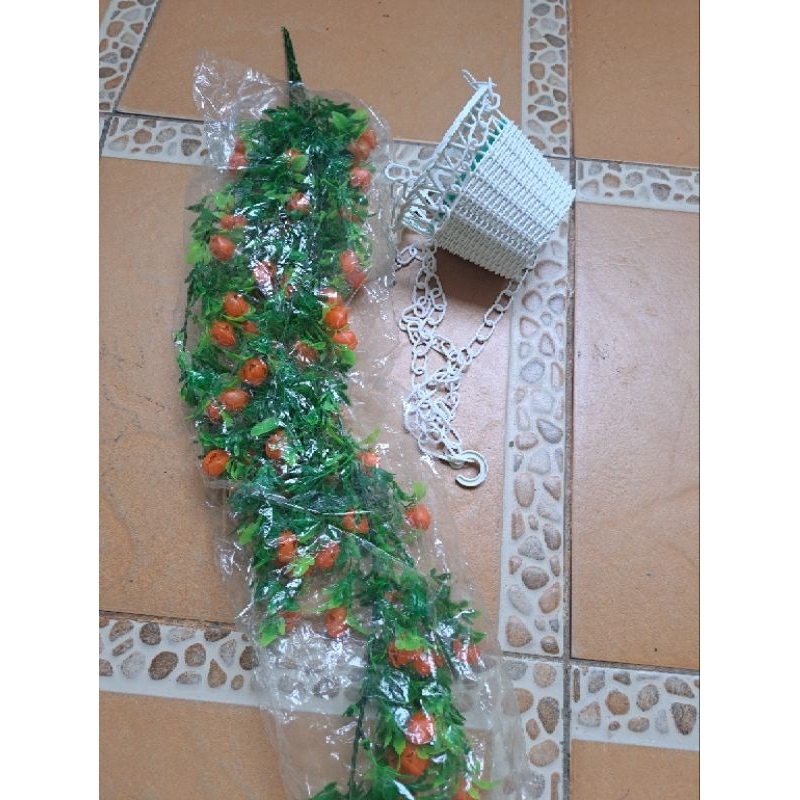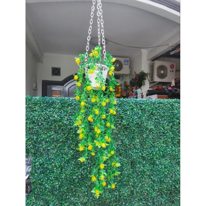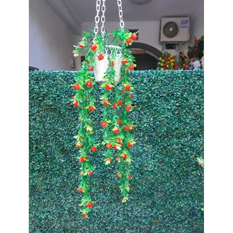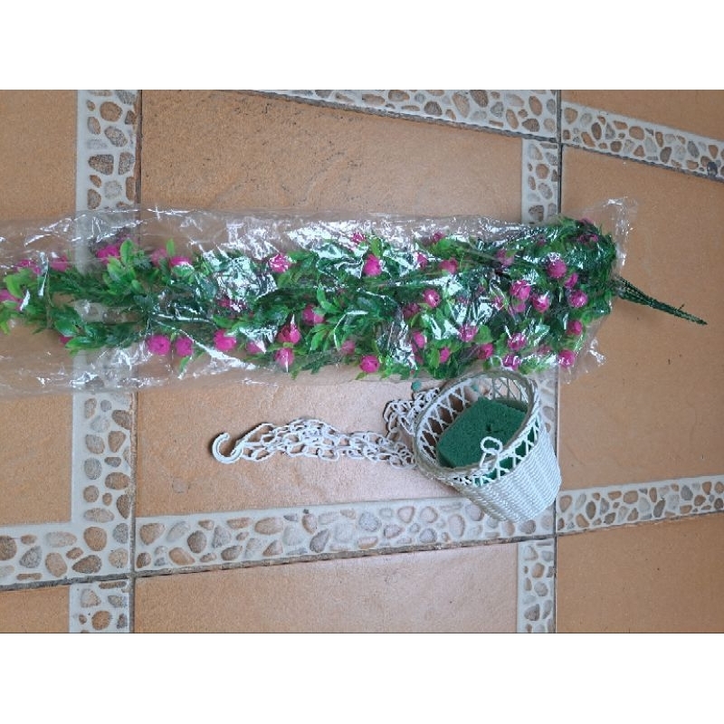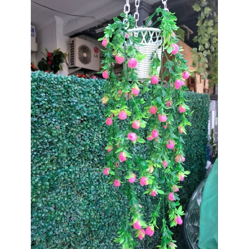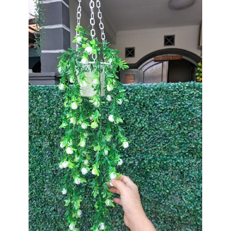 Bunga Priti+Pot Gantung Rantai/Daun Hias /bunga rambat plastik vernalya shabbychic/bunga artificial
