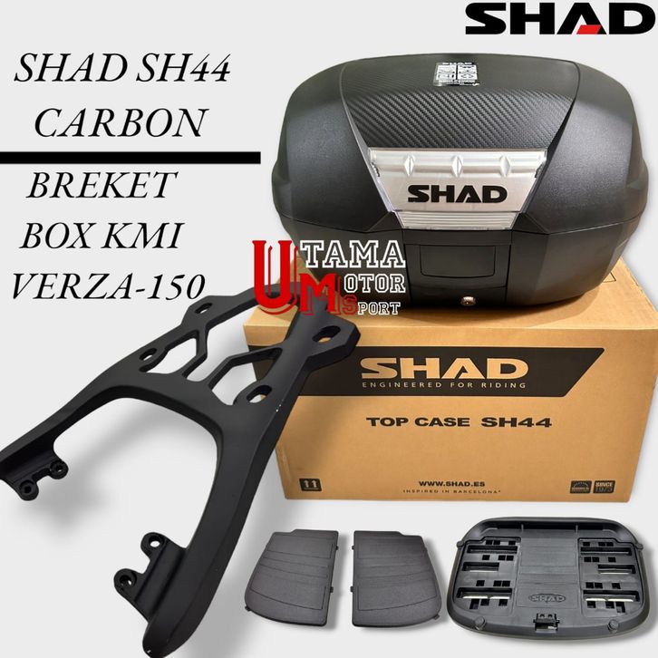 Paketan Box Belakang SHAD SH44 Carbon Dan Breket Box KMI Type Bintang Motor Versa-150 / Verza-150 Original Shad Dan Kmi