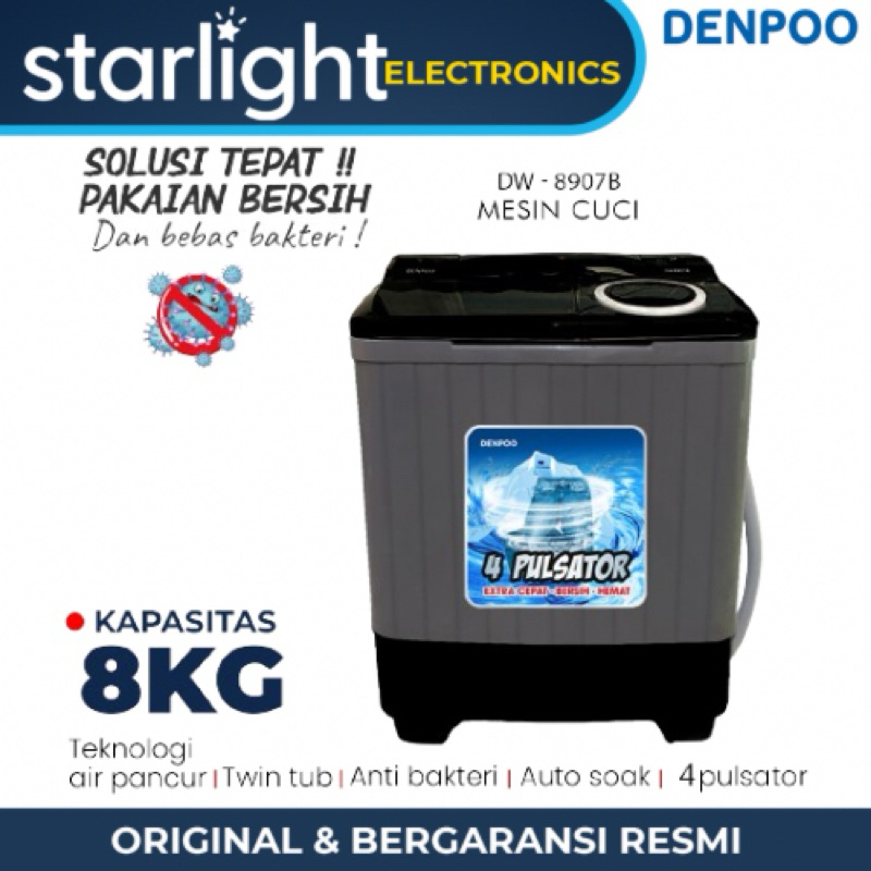 MESIN CUCI 2 TABUNG DENPOO DW 8907 4 PULSATOR GRATIS ONGKIR JABODETABEK ADA GARANSI 5 TAHUN BARANG TERJANGKAU