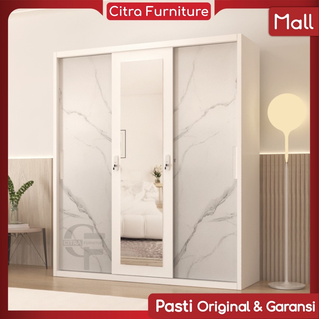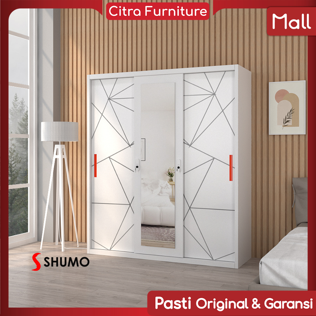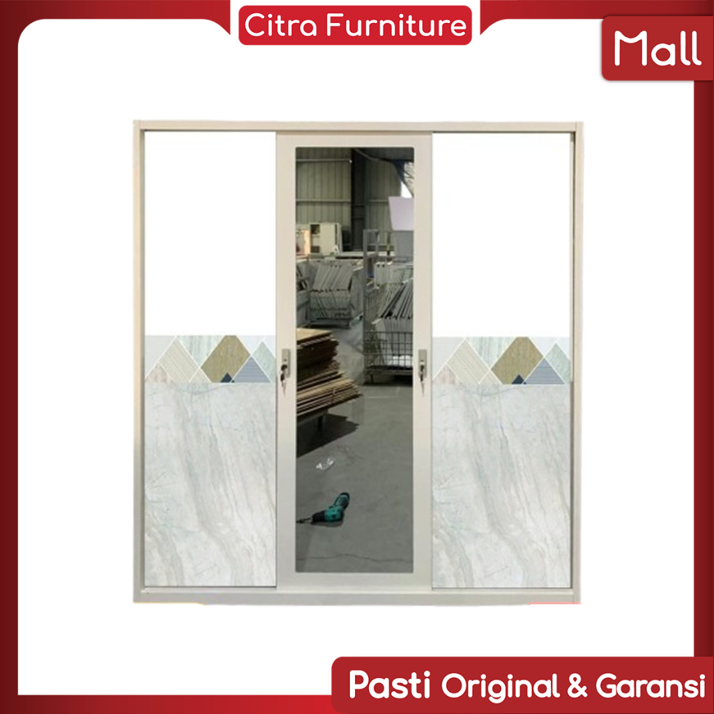 Lemari Baju Pakaian Besi 3 Pintu Jumbo Sliding Minimalis CTR1