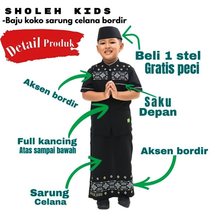 Baju Koko Anak Laki Laki Sarkoci Setelan Koko Sarung Celana Instan Bordir Free Feci 1 th Sampai 14 th