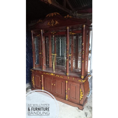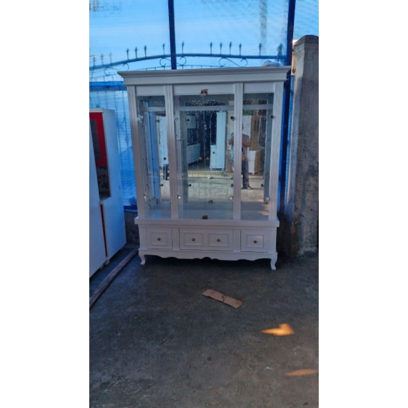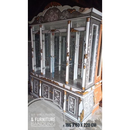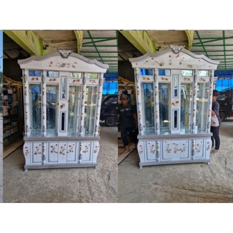 lemari hiasan ruang tamu Lemari hias kaca pajangan krstal, Ukir 4 pintu. Murah