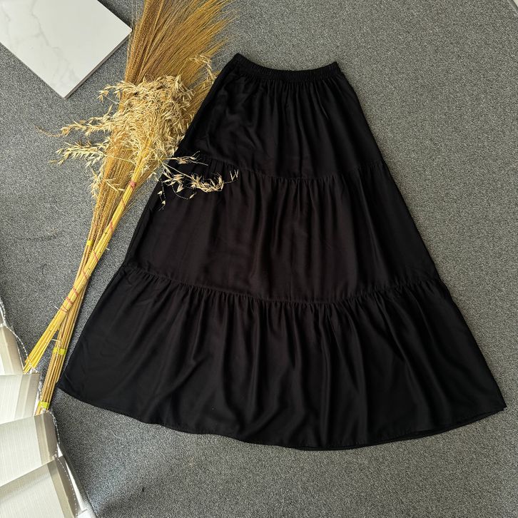 Skirt Wanita Polos Korean Style Bahan Rayon Twil Nyaman / Rok Rempel Korea / Long Skirt Polos Hitam Panjang Maxi Casual