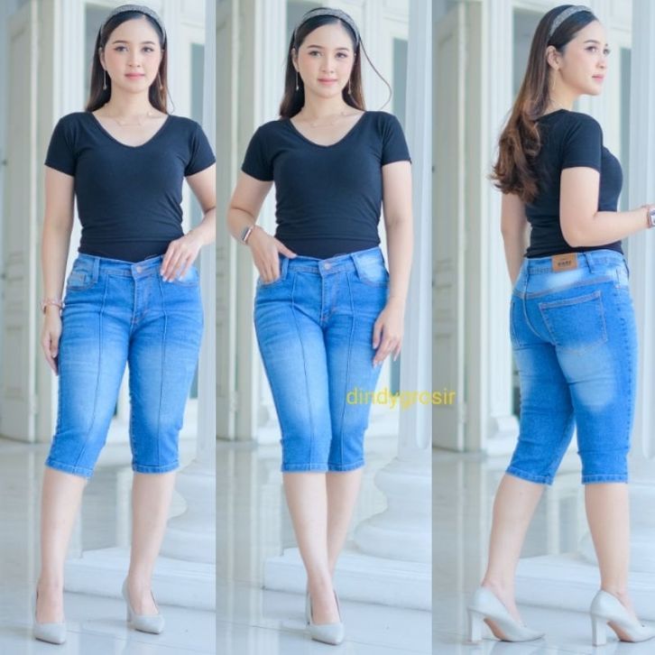 Celana Jeans Wanita Pendek 7/8 Line Stretch Dan Tebal Jerika