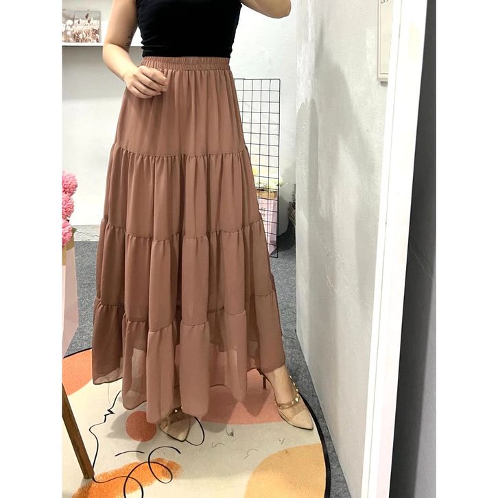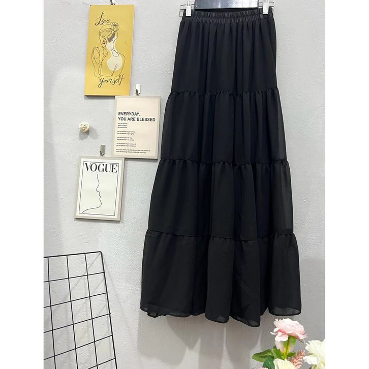 Mou_ Rok Panjang Beraksen 4 Susun | Long Skirt Korean Style | Rok Wanita Muslim