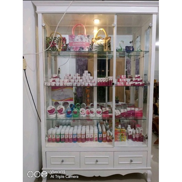 lemari kaca ruang tamu lemari hiasan Lemari Pajangan krstal Kayu 2 Dan 3 Pintu
