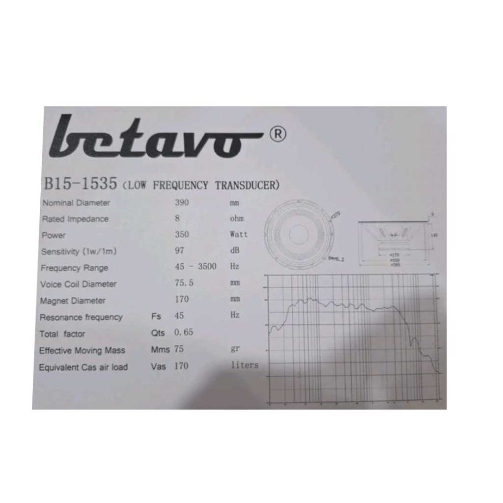 Speaker komponen 15" BETAVO B15-1535 Professional LOW Frequency Transducer 15 inch Original