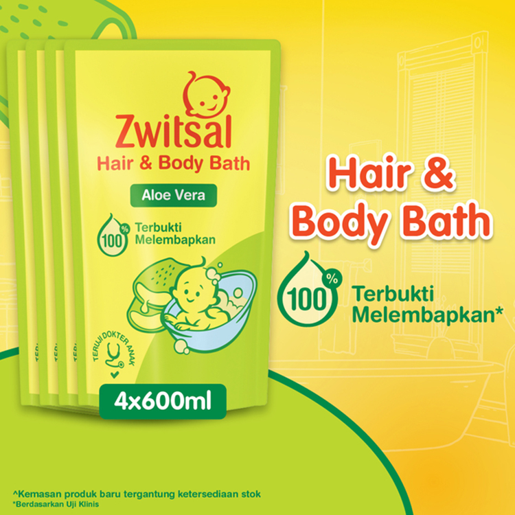 Zwitsal Baby Bath Hair & Body Aloe Vera 600ml Multipack Isi 4 Harga Spesial