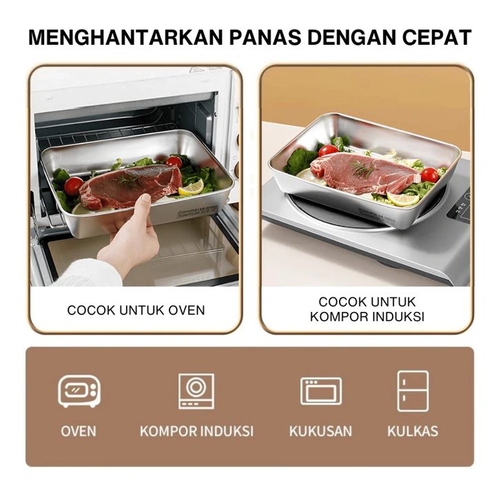 Food Container Stainless Box Wadah Sayur Kotak Nampan Persegi Baking Tray Baki Stainless Steel Cocok untuk oven microwav