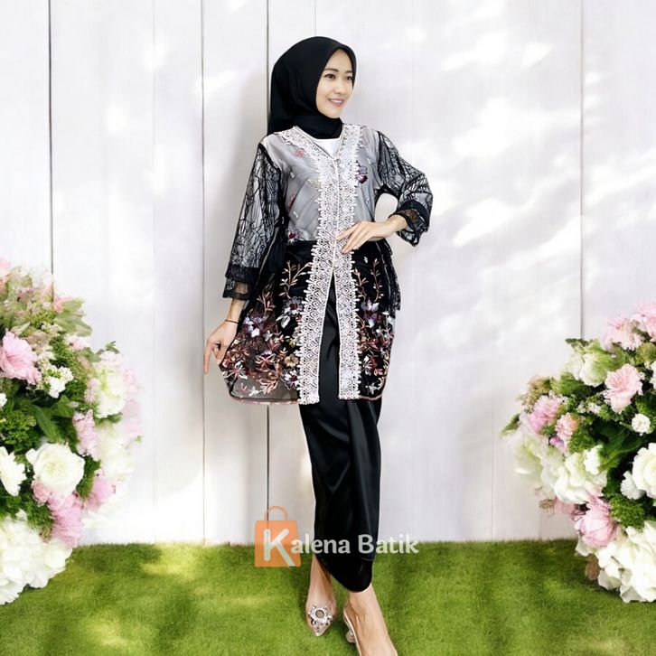 PROMO One Set Kebaya Modern Kekinian Wisuda Tulle Gardenia Warna Mix Renda Full Chantily Halus Setelan Inner Outer Rok C