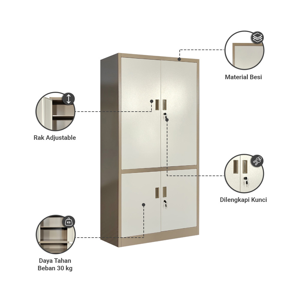 Lemari Arsip Kantor Metal 4 Pintu - Cokelat File Cabinet Lemari Besi Kabinet Tempat Dokumen Arsip Berkas Document