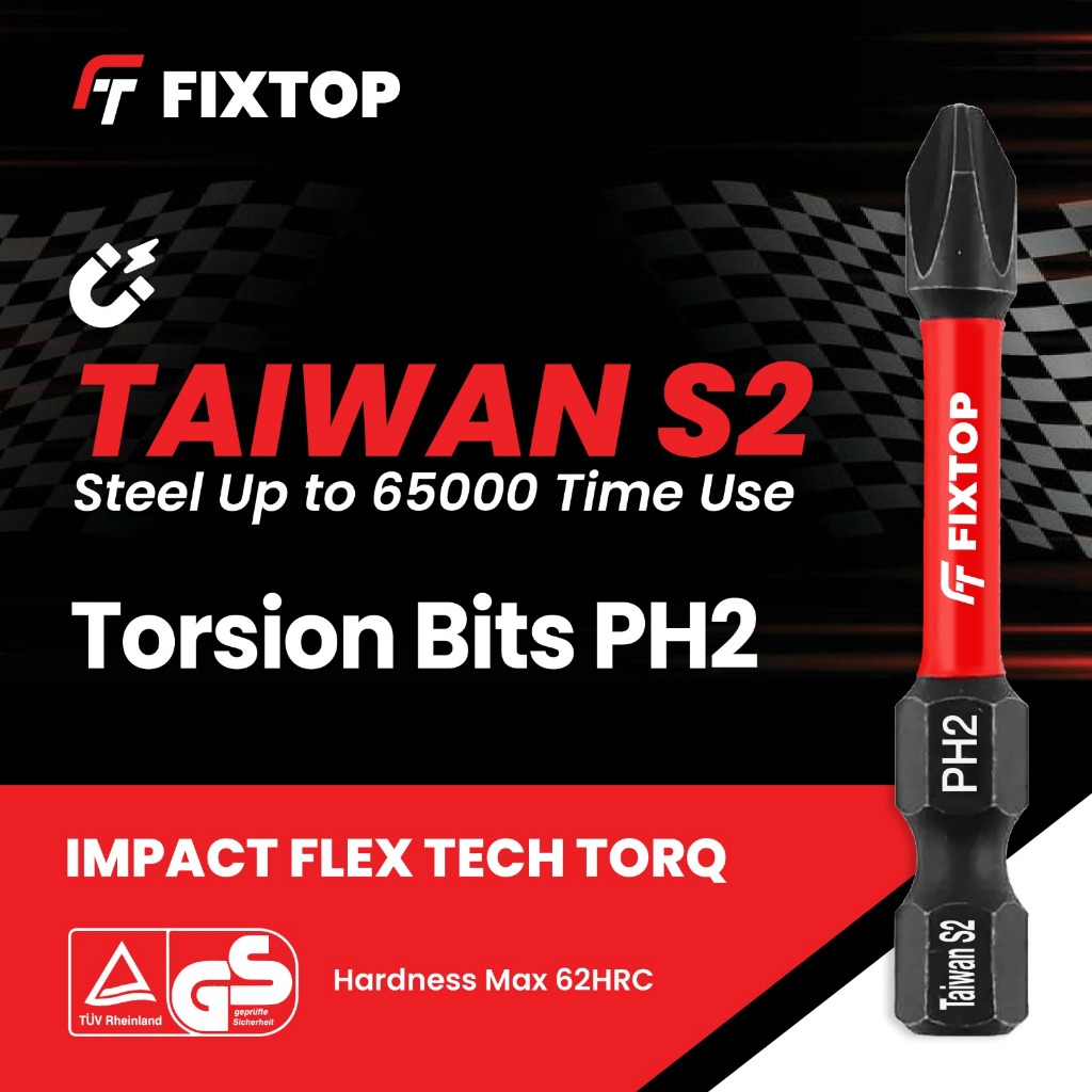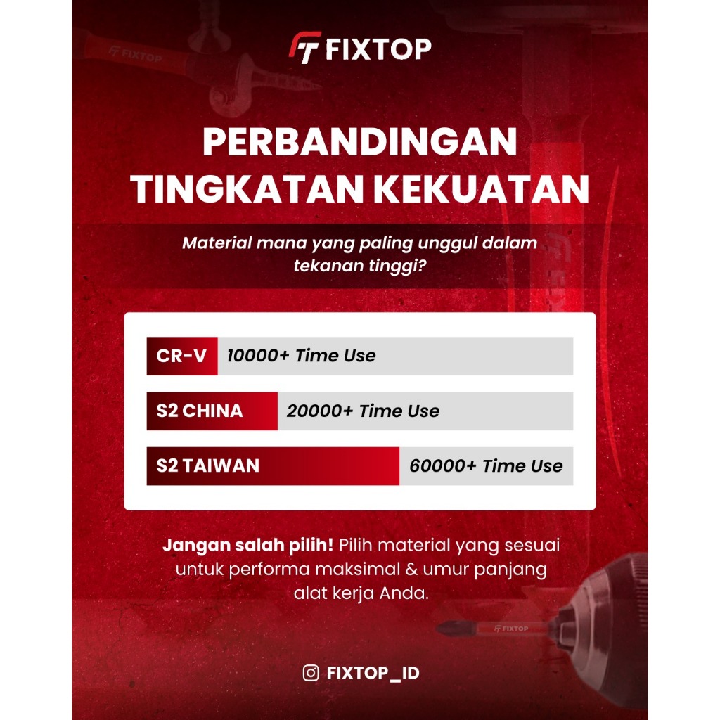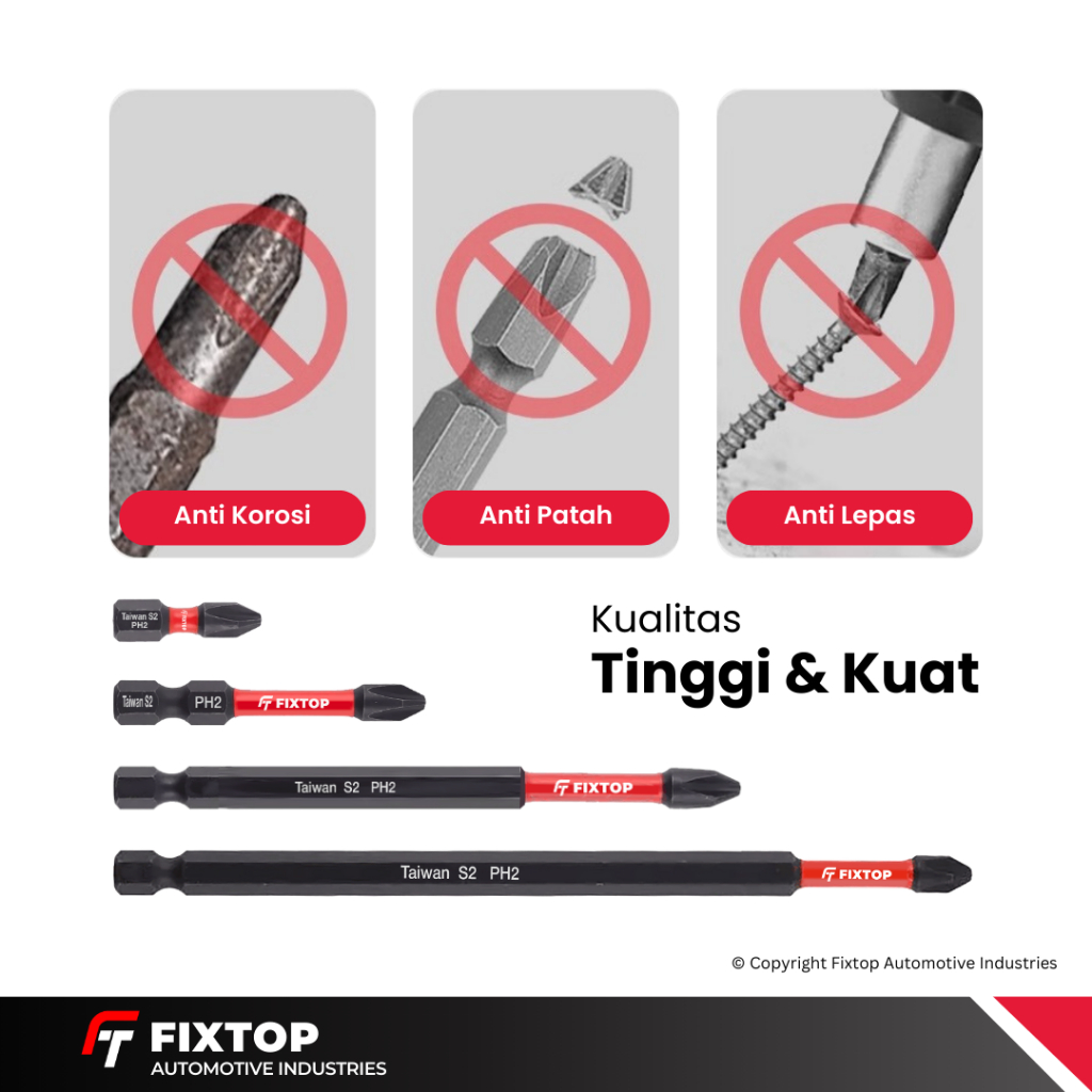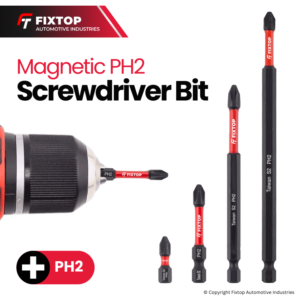 FIXTOP Mata Obeng Impact Magnet Hex 1/4 PH2 Panjang 25MM-150MM Magnetic Screwdriver Drill Bit