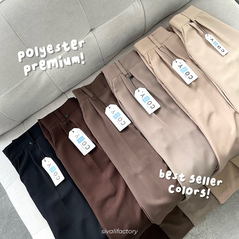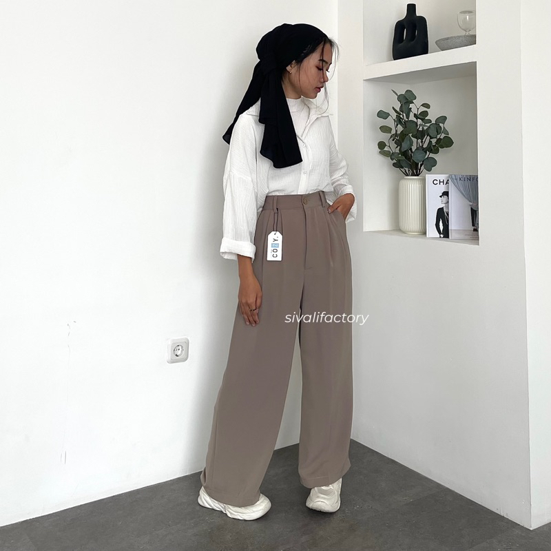 Loose Pants - Celana Kulot Polyester - Trousers Kantor Formal Casual - Celana Panjang Highwaist Wanita - Aks1