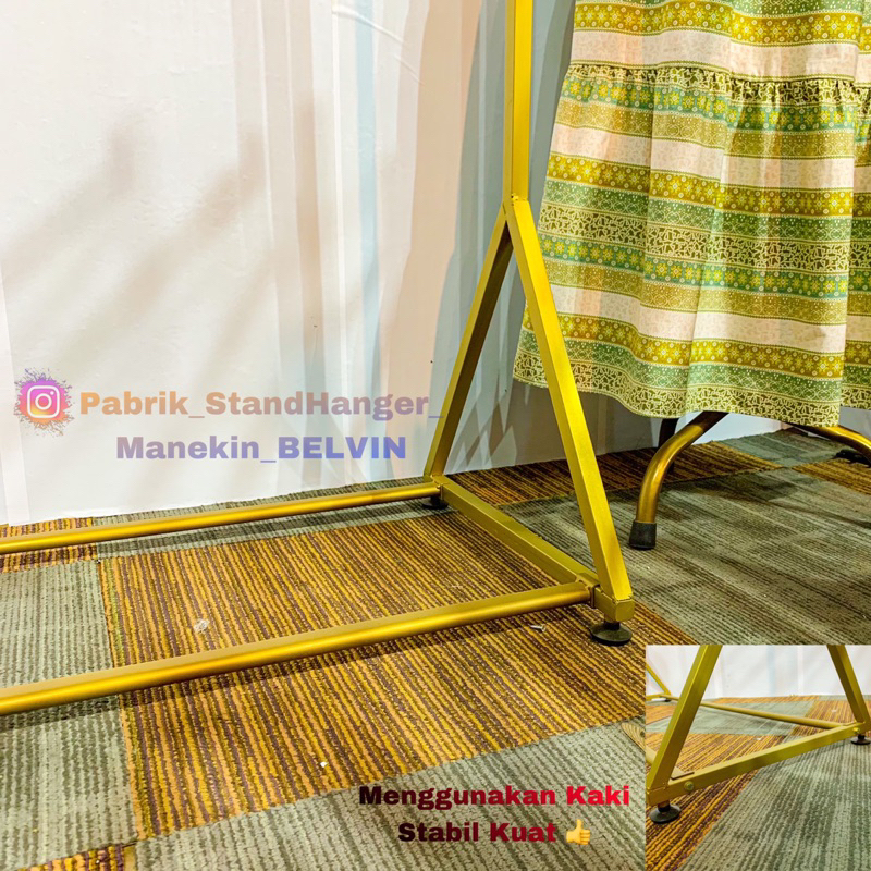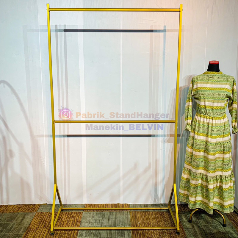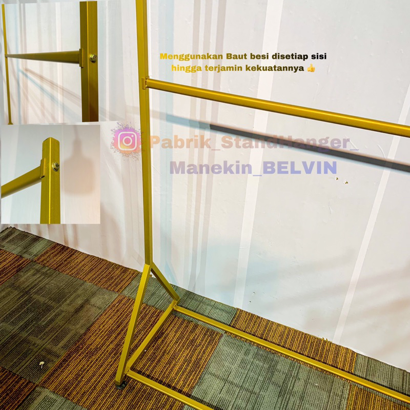 StandHanger Kaki Siku Pipa Kotak 2 Susun Gold 200 CM | Gawang Siku 2 M | Gantungan Baju 2 Meter | Gawang Pakaian Butik|