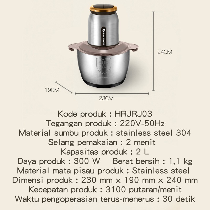 Chopper Han River Blender Daging Bumbu Mini Kapsul Penggiling Daging Multifungsi Hrjrj-s2bk Chopper 2l Serbaguna Viral