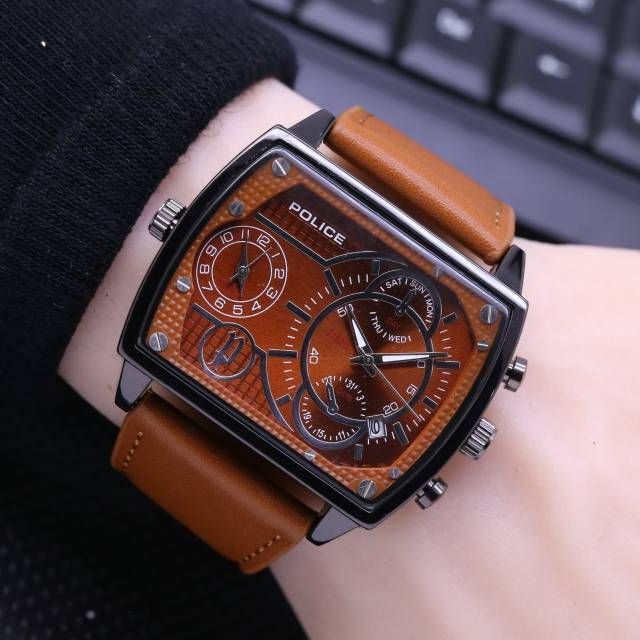 Jam Tangan Police / Jam Tangan Pria Police Double Time Tanggal Aktif Tali Kulit