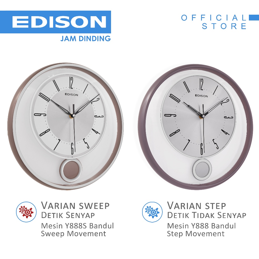 Jam Dinding Edison Sweep ES EQ 343 AL66 Bandul Diameter 330mm 33cm Aesthetic Mewah Murah - RS