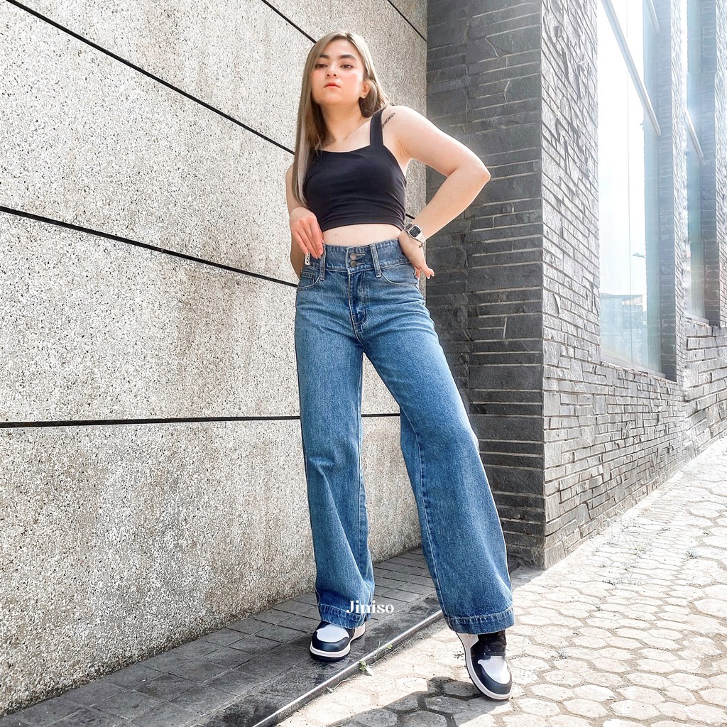 JINISO - Highwaist Baggy Jeans - Celana Panjang Highwaist Wanita - Celana Highwaist - Yud6