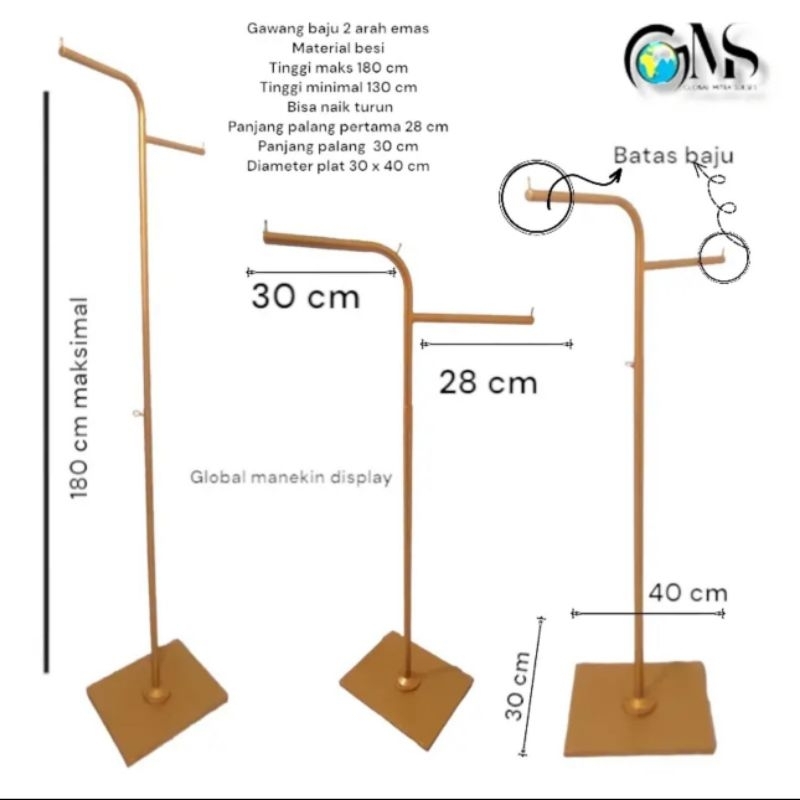 Gantungan Gawang Besi Display Baju Dua Arah Gold Premium (Gawang 2 Arah Gold)
