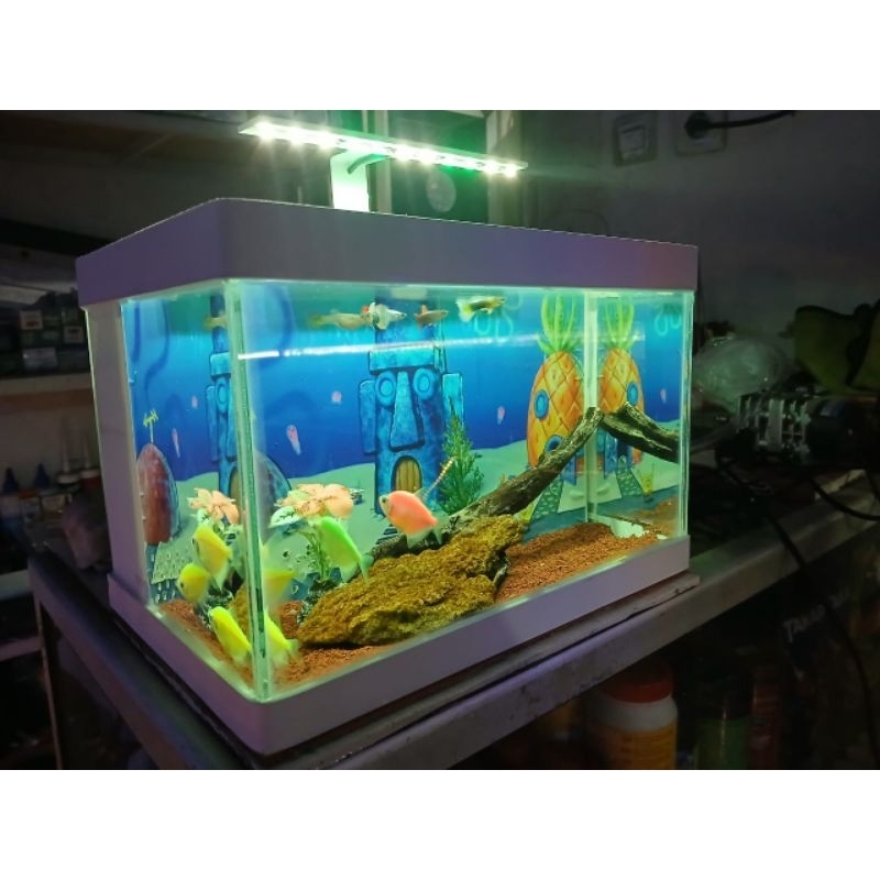 PROMO AQUARIUM MINI KACA FULLSET UK 30*20*20 fillter belakang