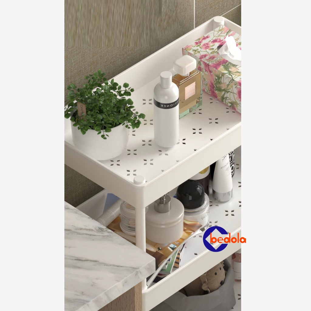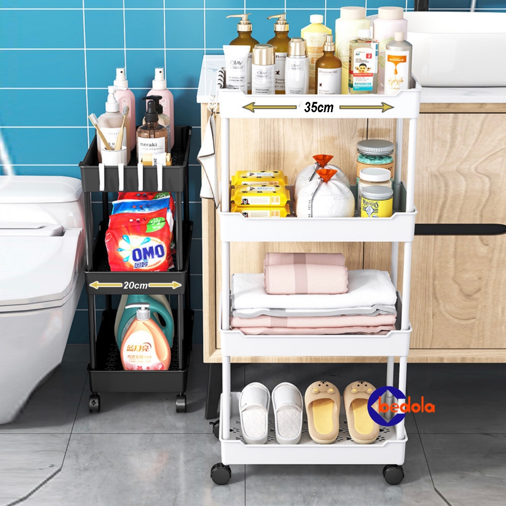 Bedola rak kamar mandi plastik rak toilet rak susun serbaguna tempat tissue sabun dengan roda free 3 kait