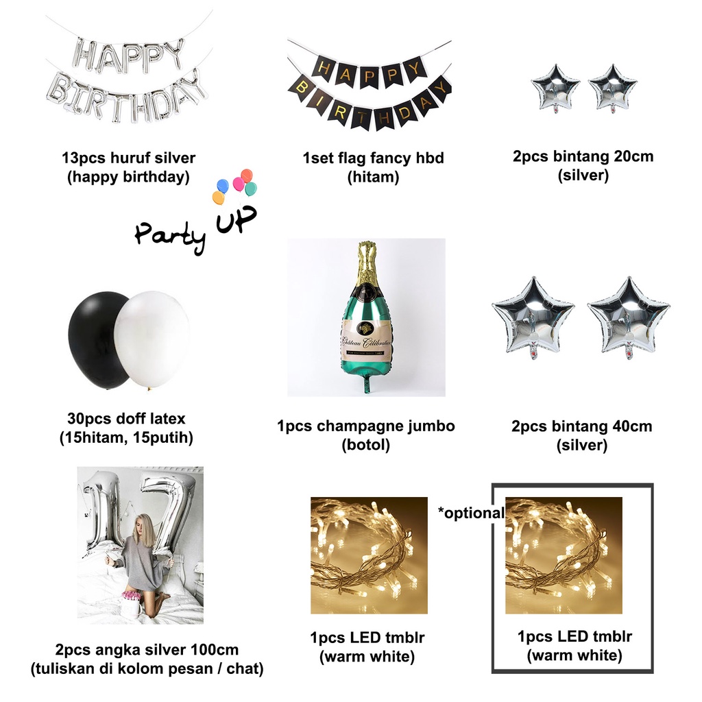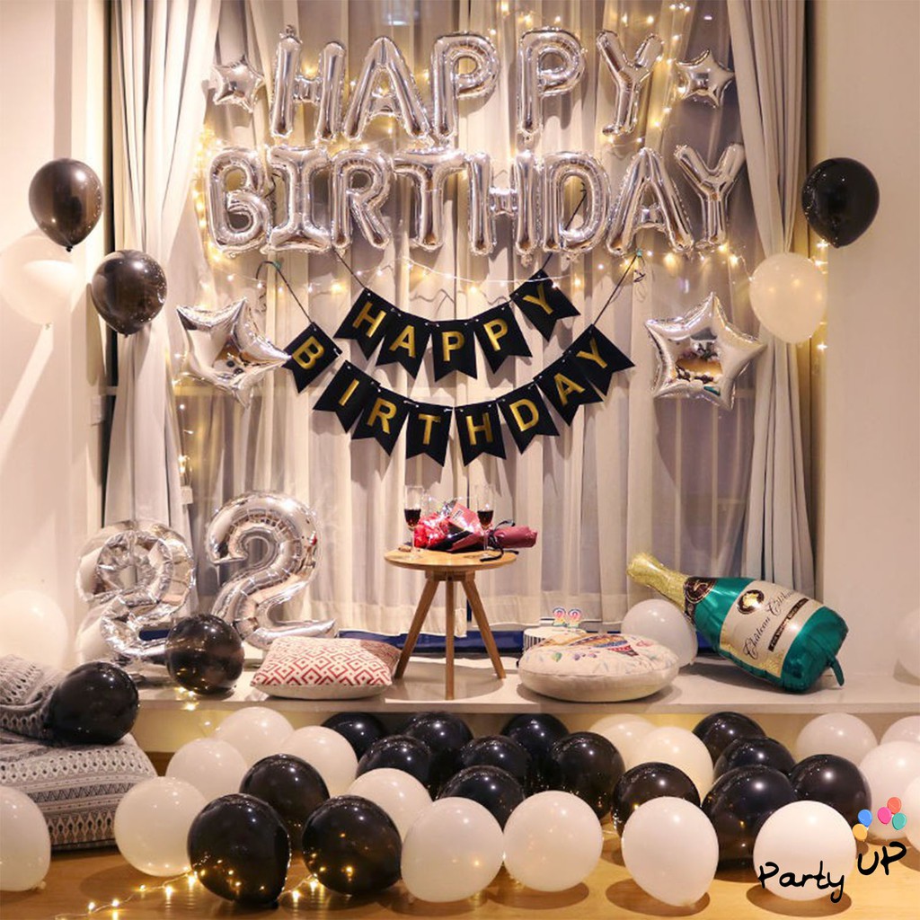 [PAKET] HBD WHITE BLACK THEME DECORATION