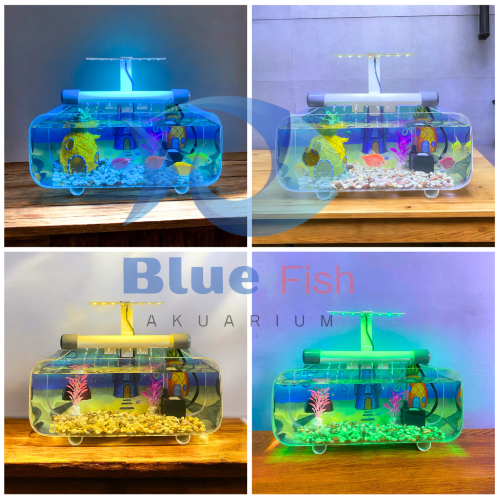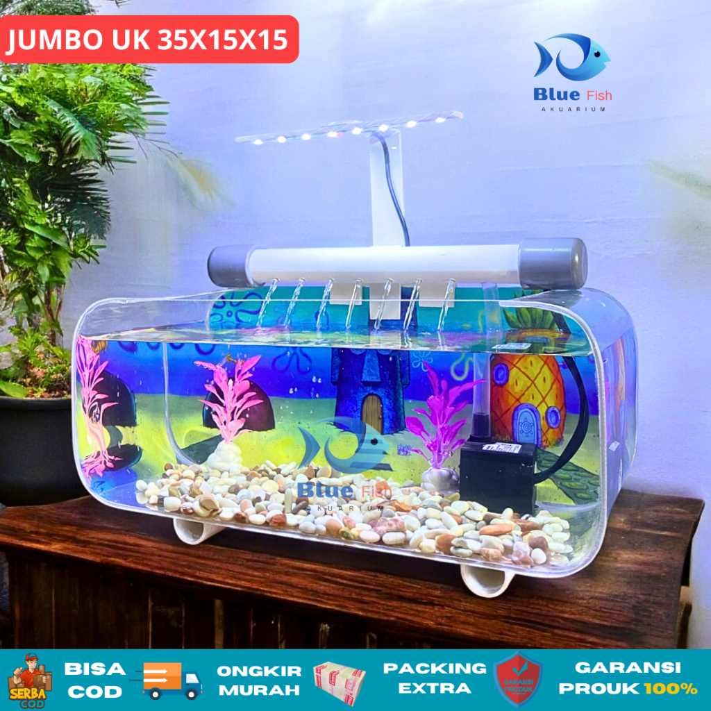 1 Set aquarium akrilik/ akuarium minimalis JUMBO UK 35 X 15 X 15 lengkap tinggal pakai (jumbo PTB)