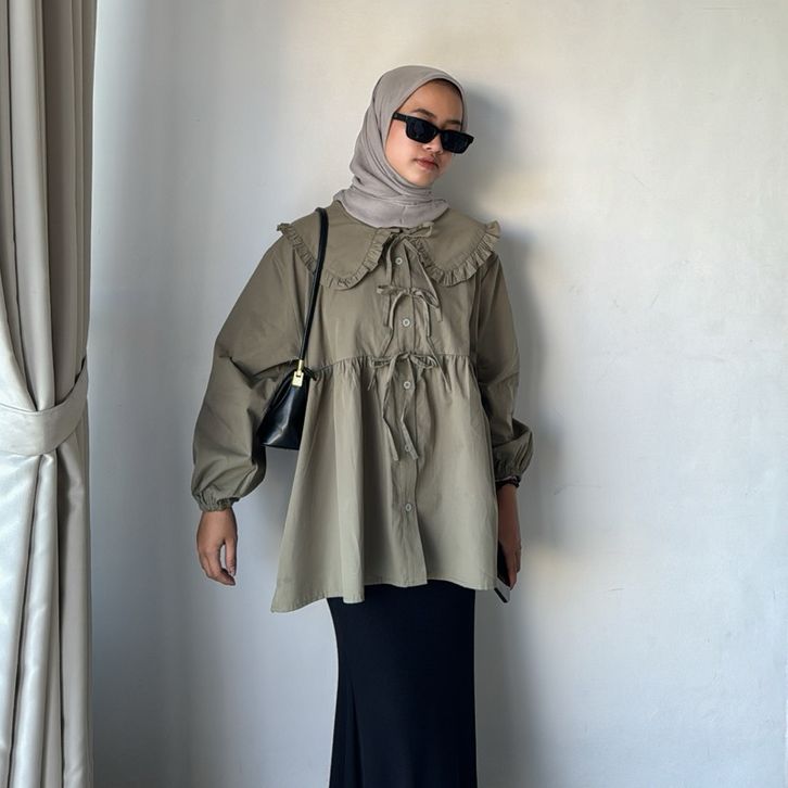 Kemeja Baju Atasan Wanita Pita Katun Poplin
